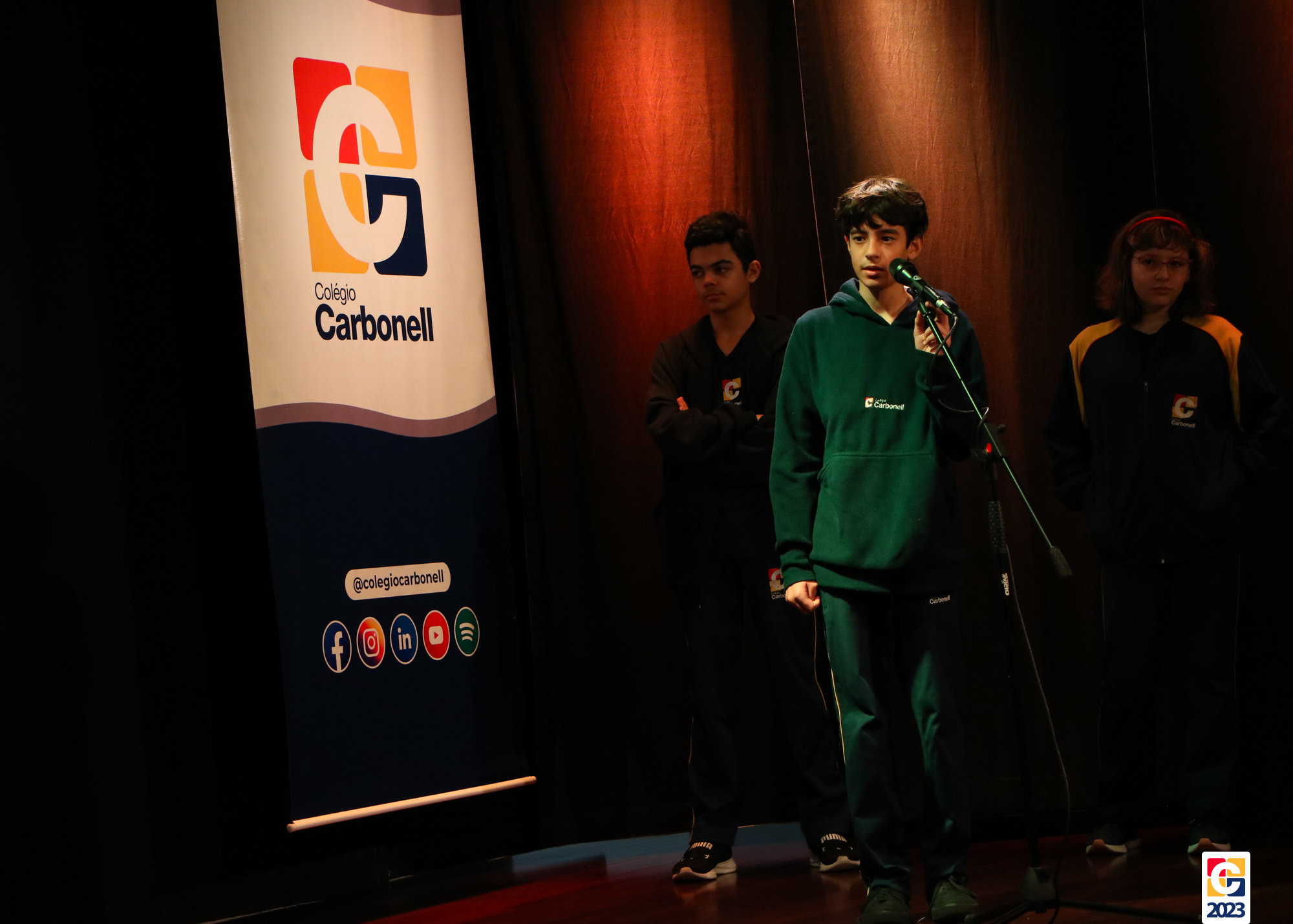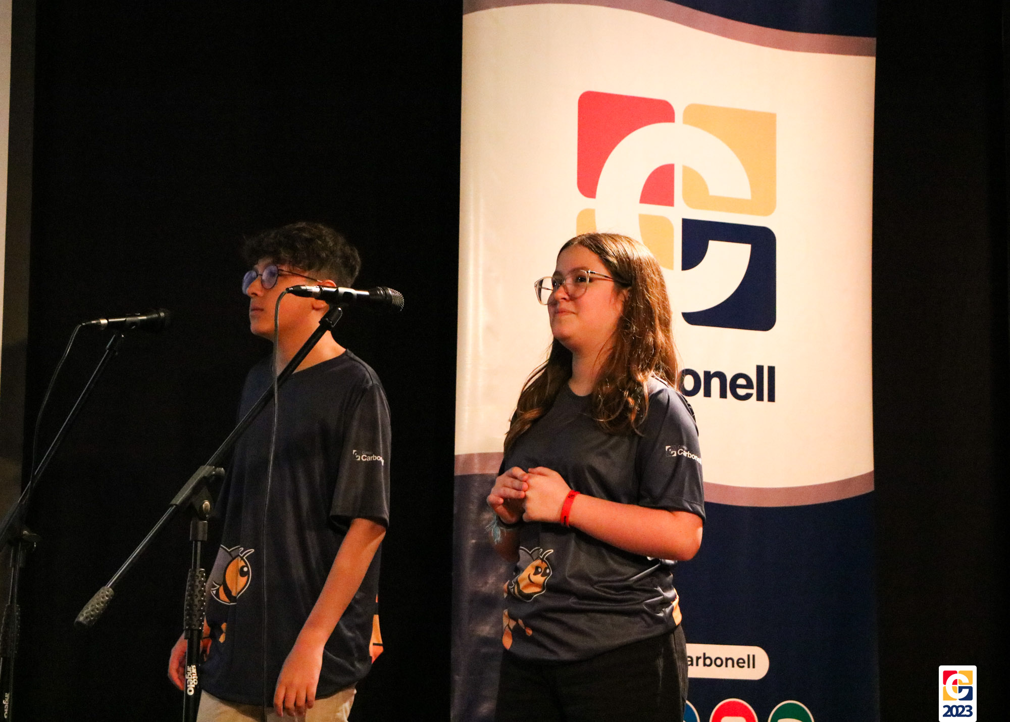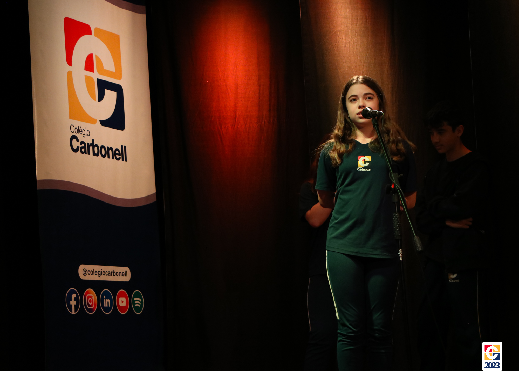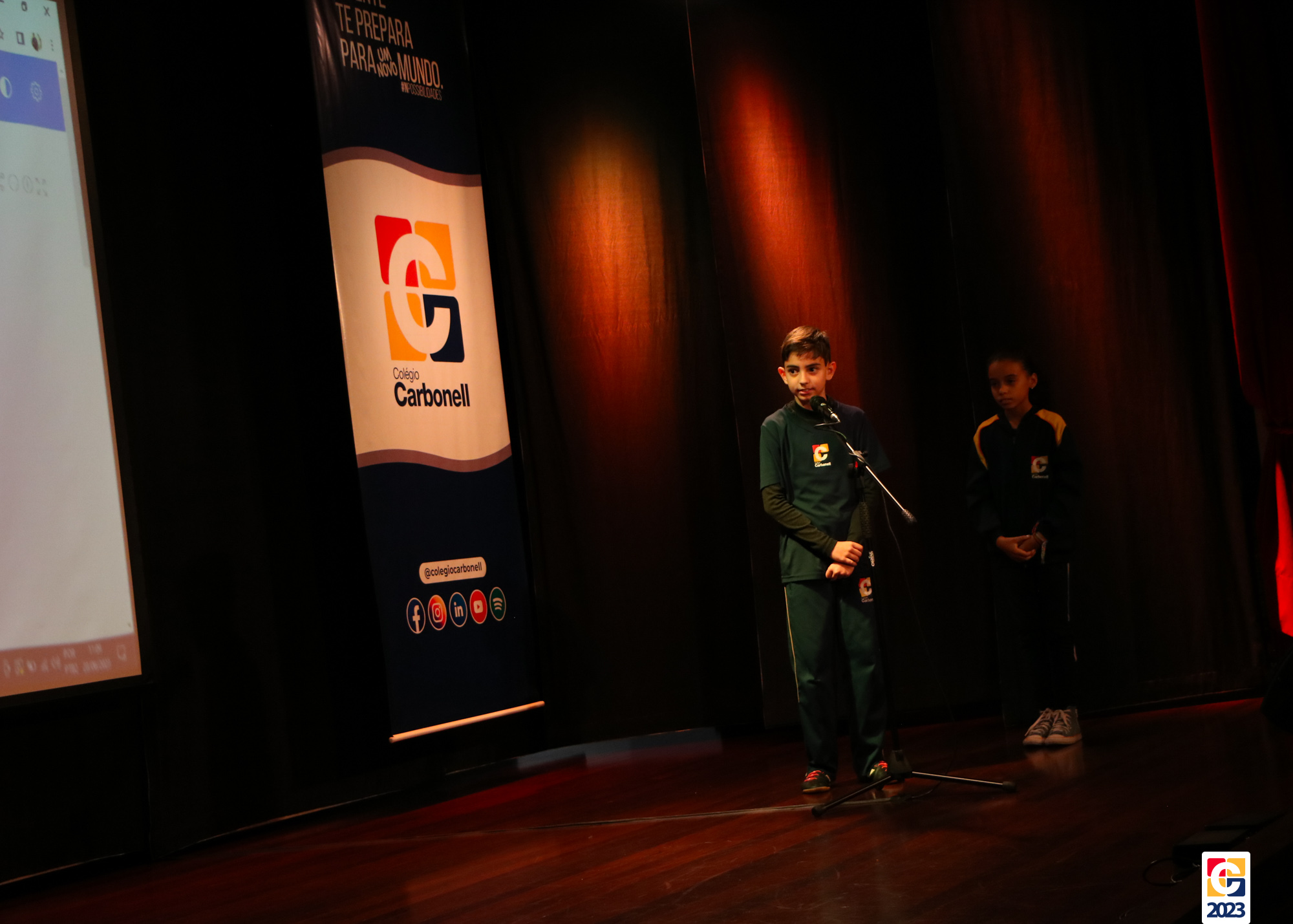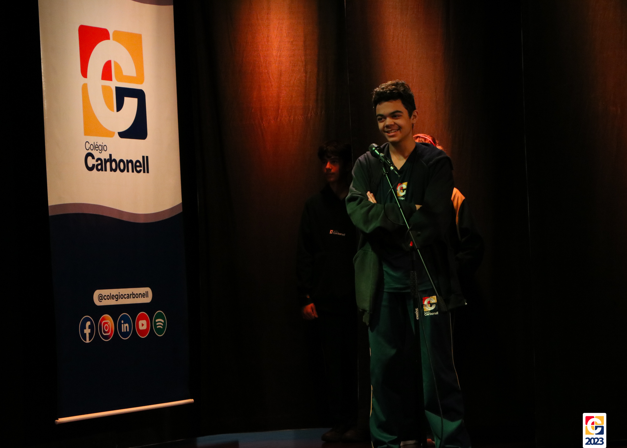 Mais uma vez, o Teatro Oswaldo Mazoni foi palco do Spelling Bee — competição de soletração em inglês para alunos dos Anos Iniciais ao Ensino Médio. A edição de 2023 aconteceu no último sábado (12), faz parte do currículo de inglês do Carbonell Language Program e foi iniciada já há alguns meses, em março, com etapas eliminatórias em grupos: 4º e 5º anos, 6º e 7º anos, 8º e 9º anos e, por fim, jovens do Ensino Médio. 💬