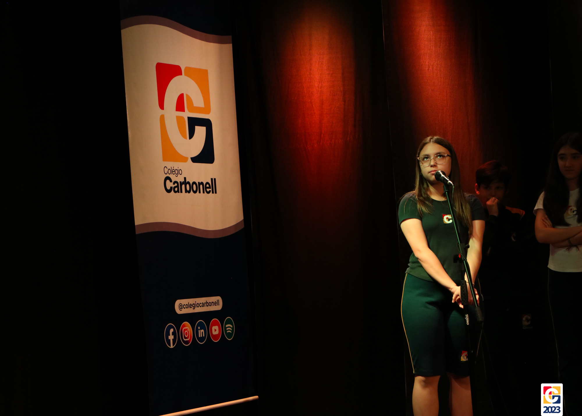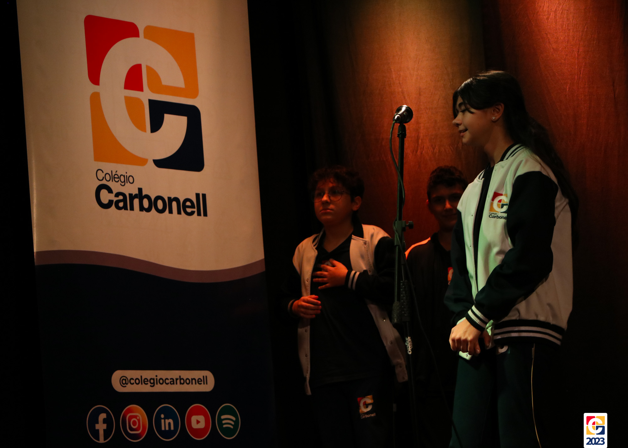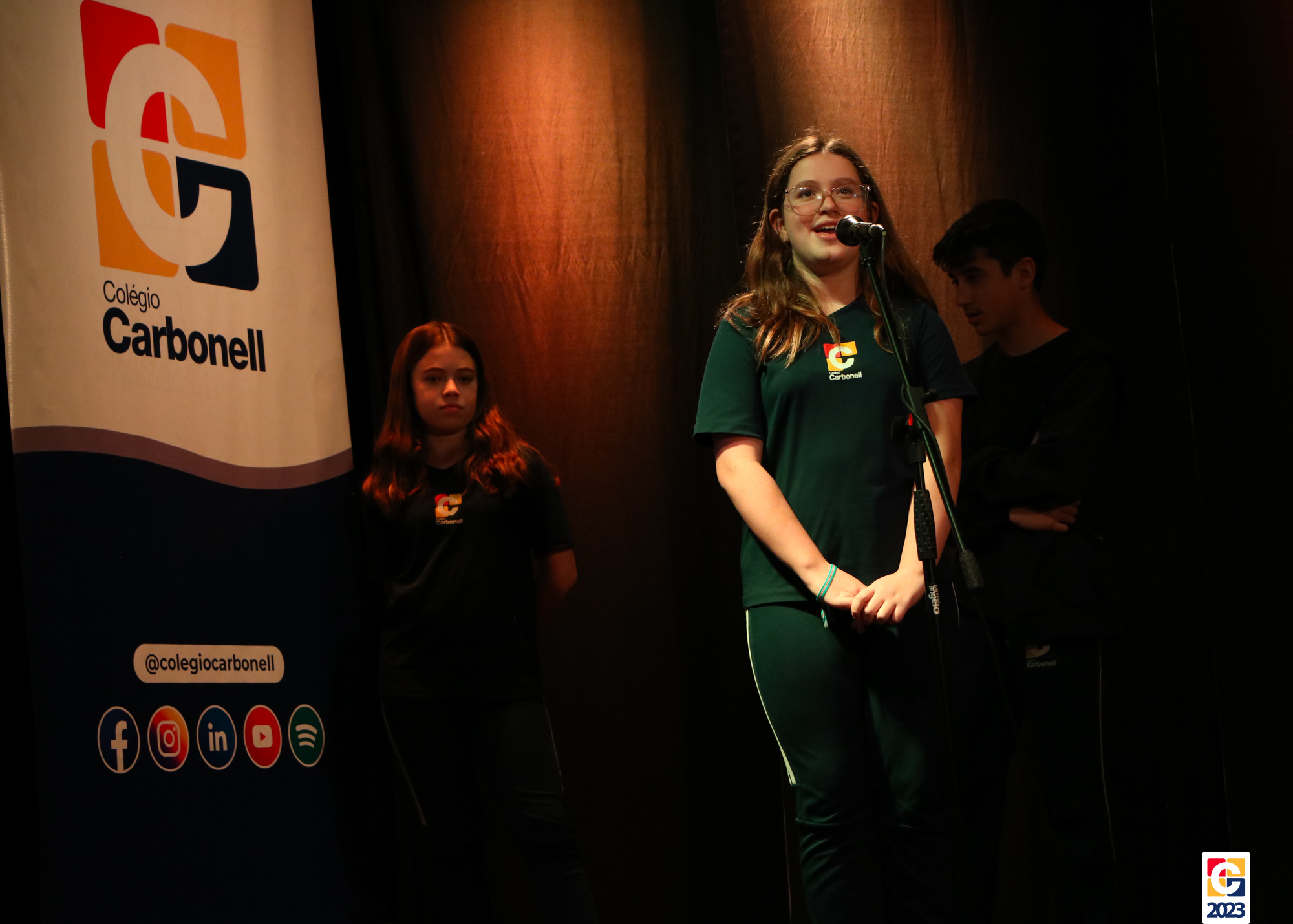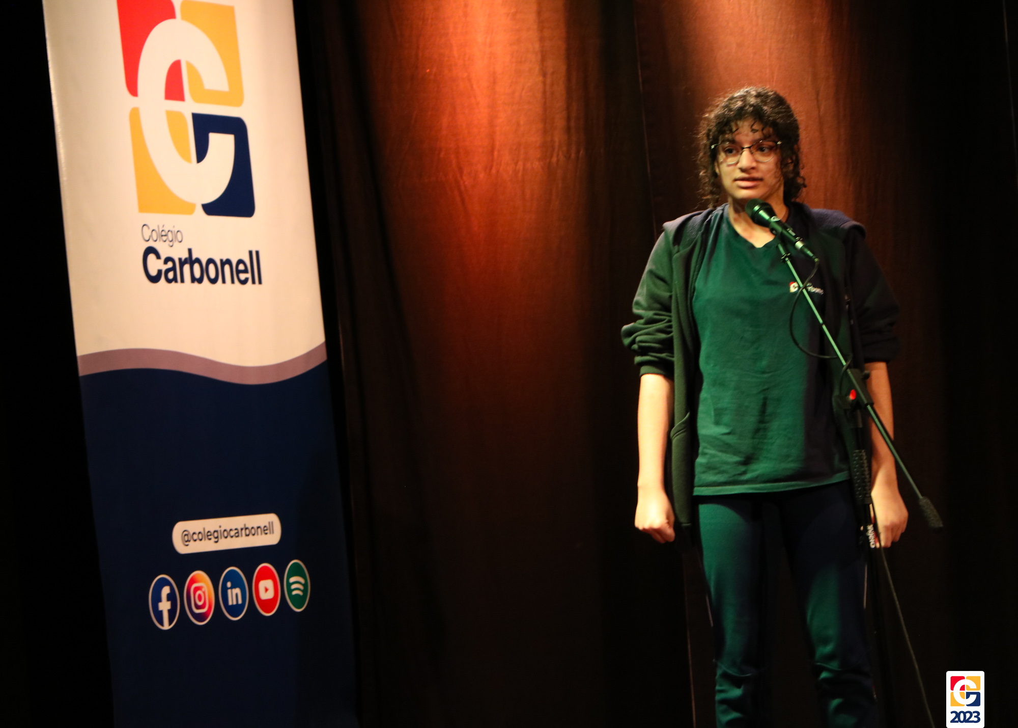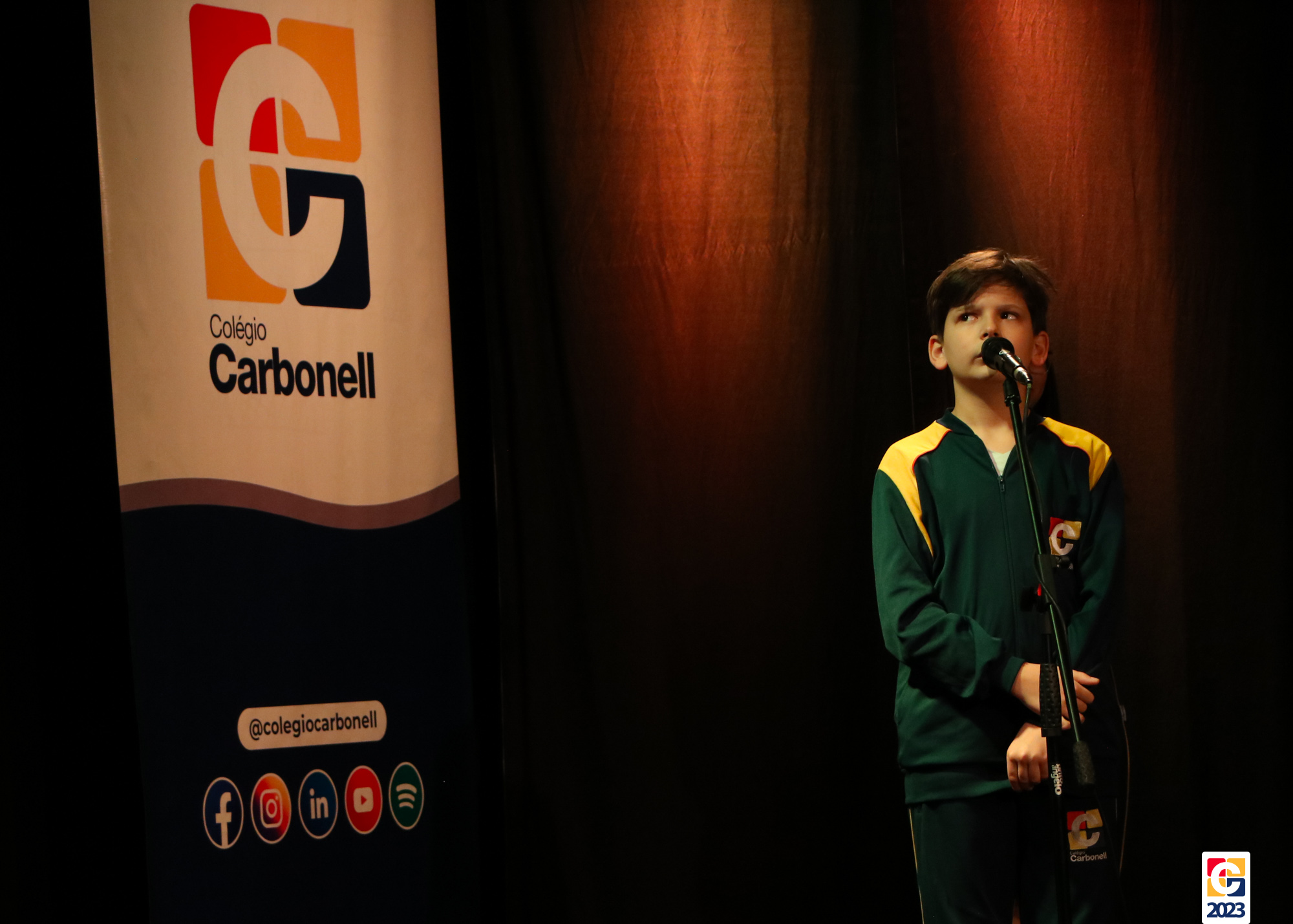Mais uma vez, o Teatro Oswaldo Mazoni foi palco do Spelling Bee — competição de soletração em inglês para alunos dos Anos Iniciais ao Ensino Médio. A edição de 2023 aconteceu no último sábado (12), faz parte do currículo de inglês do Carbonell Language Program e foi iniciada já há alguns meses, em março, com etapas eliminatórias em grupos: 4º e 5º anos, 6º e 7º anos, 8º e 9º anos e, por fim, jovens do Ensino Médio. 💬