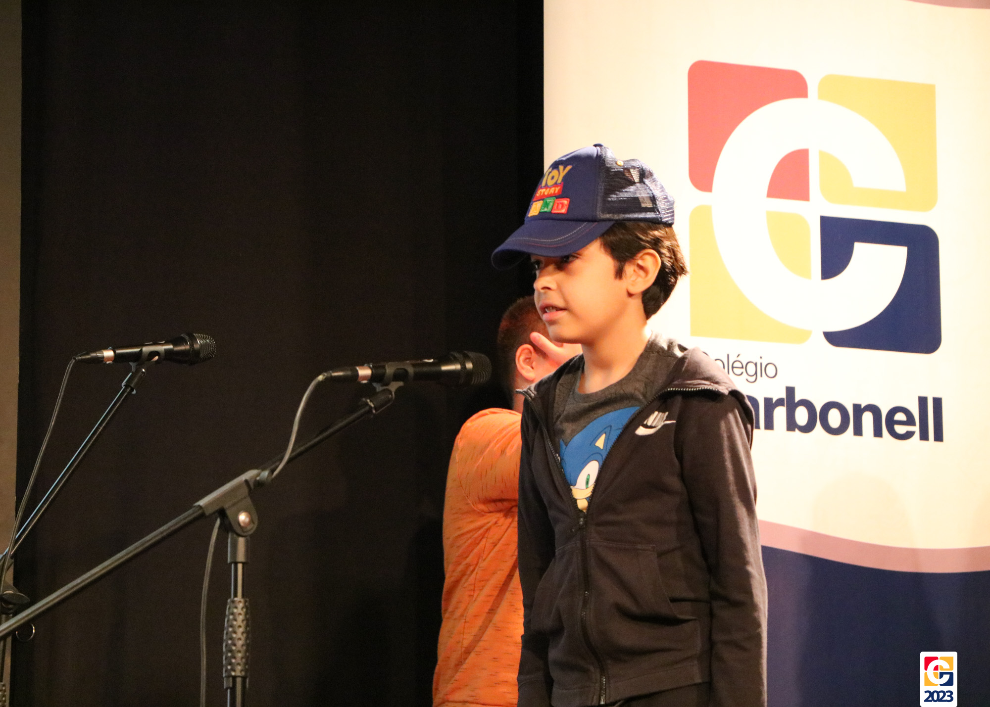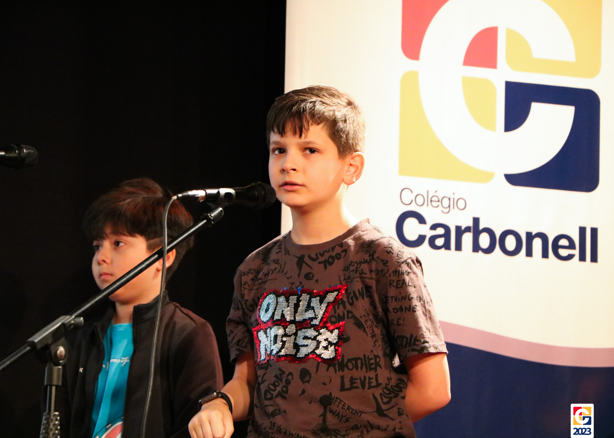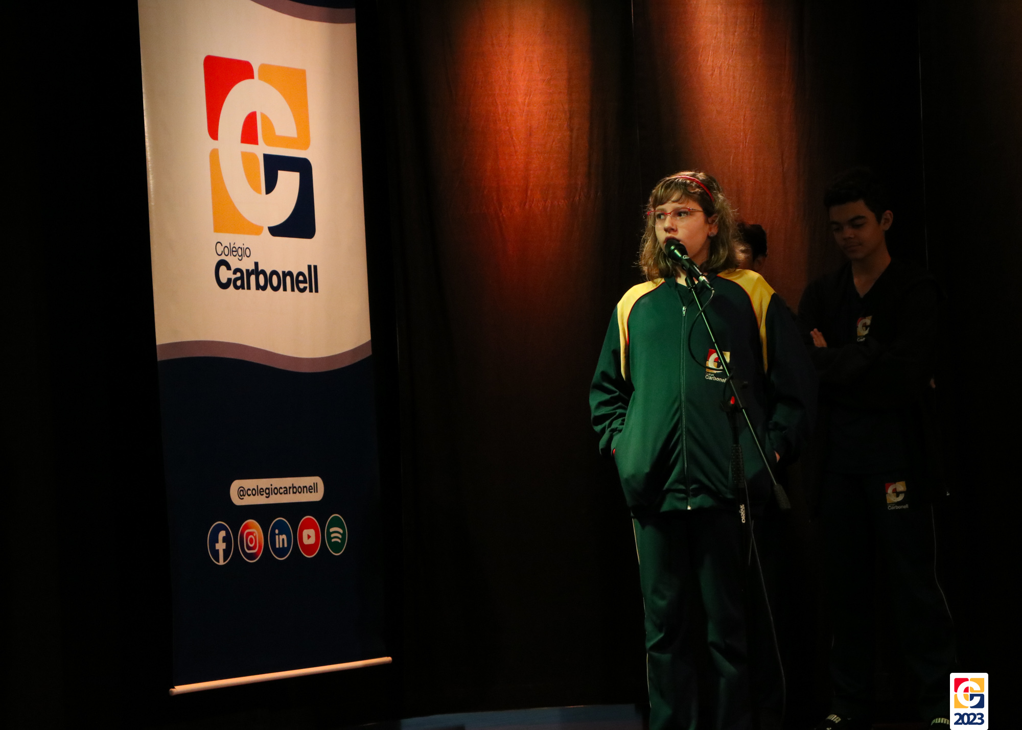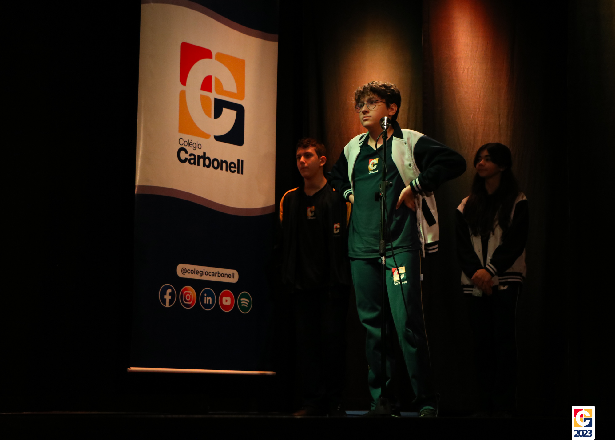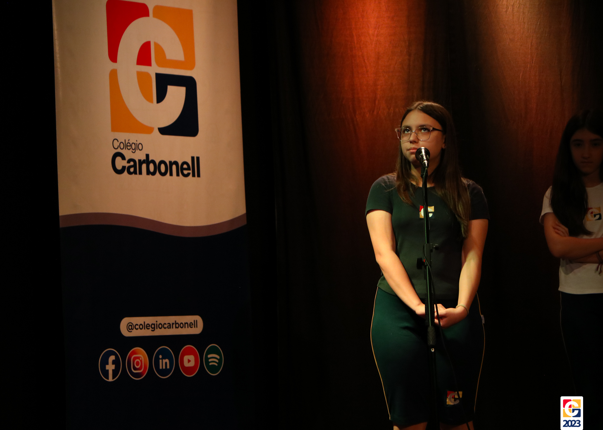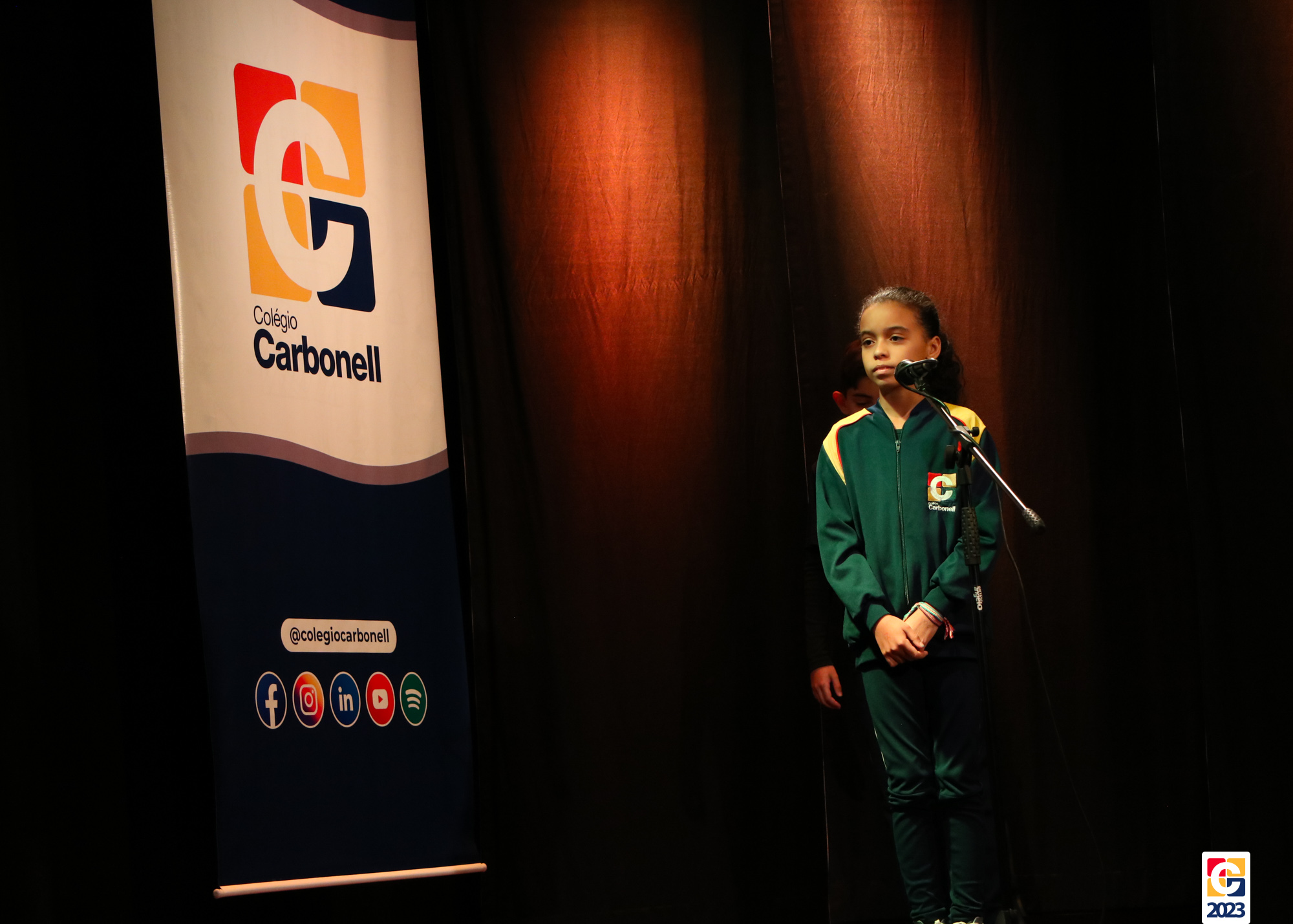 Mais uma vez, o Teatro Oswaldo Mazoni foi palco do Spelling Bee — competição de soletração em inglês para alunos dos Anos Iniciais ao Ensino Médio. A edição de 2023 aconteceu no último sábado (12), faz parte do currículo de inglês do Carbonell Language Program e foi iniciada já há alguns meses, em março, com etapas eliminatórias em grupos: 4º e 5º anos, 6º e 7º anos, 8º e 9º anos e, por fim, jovens do Ensino Médio. 💬
