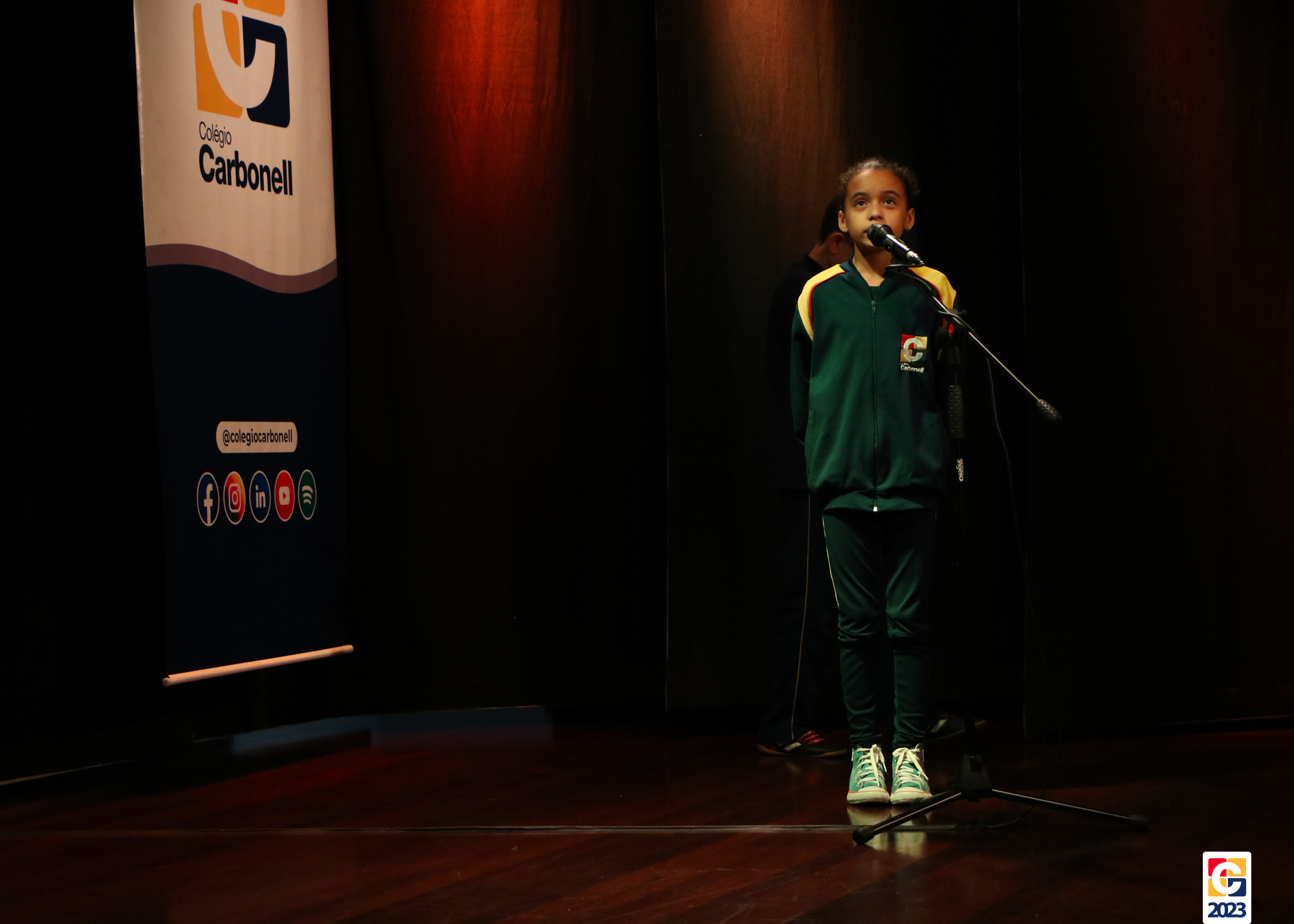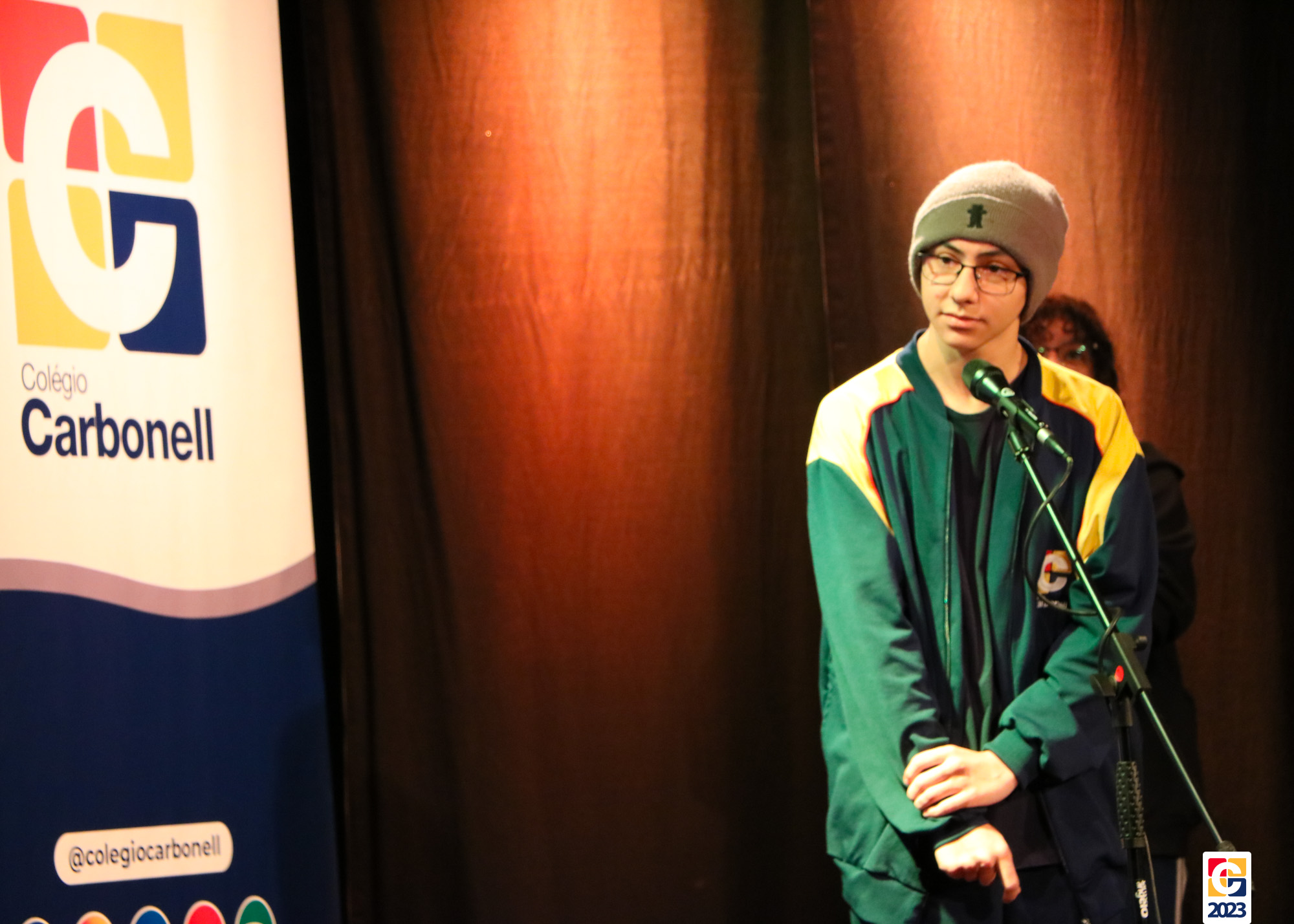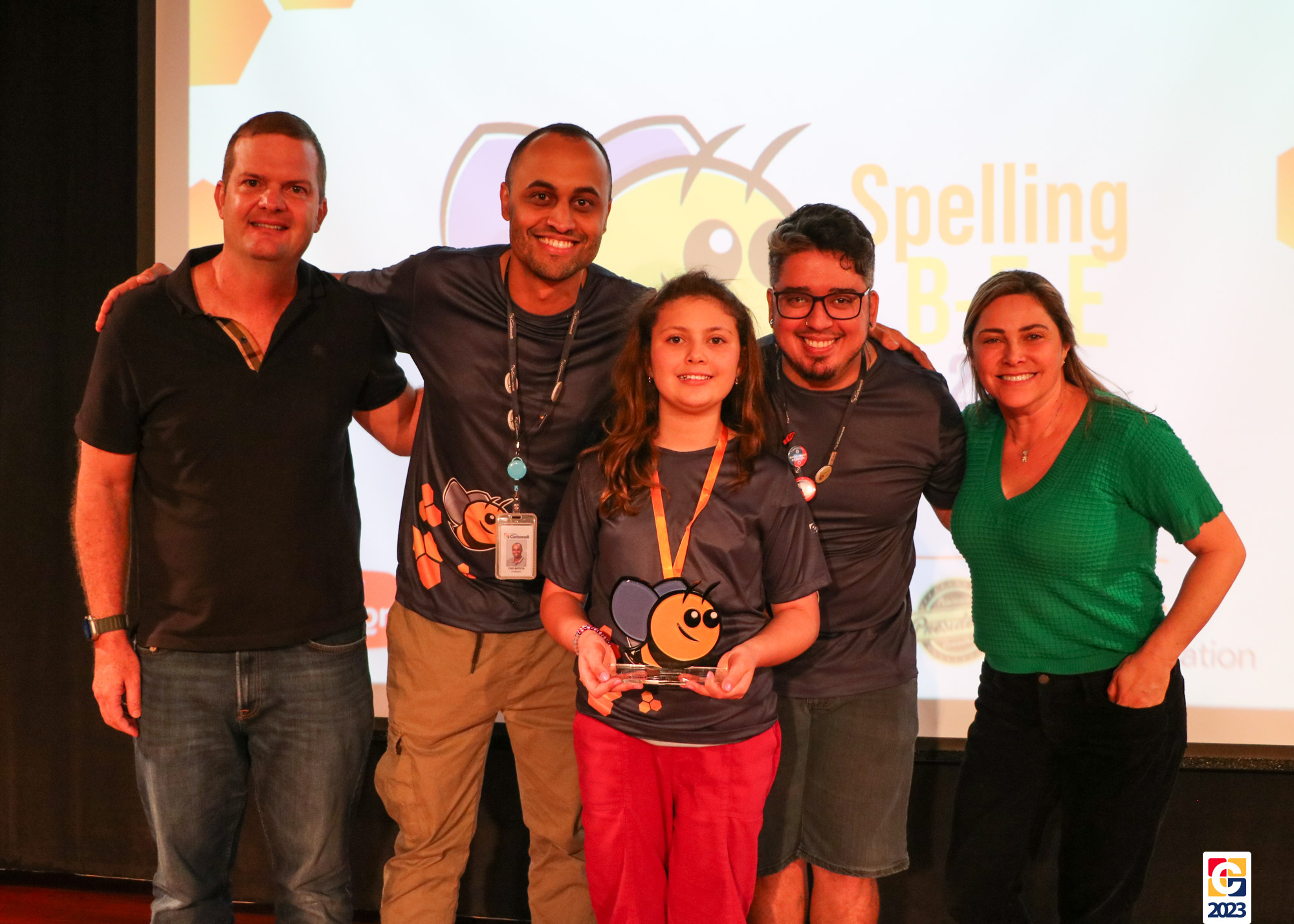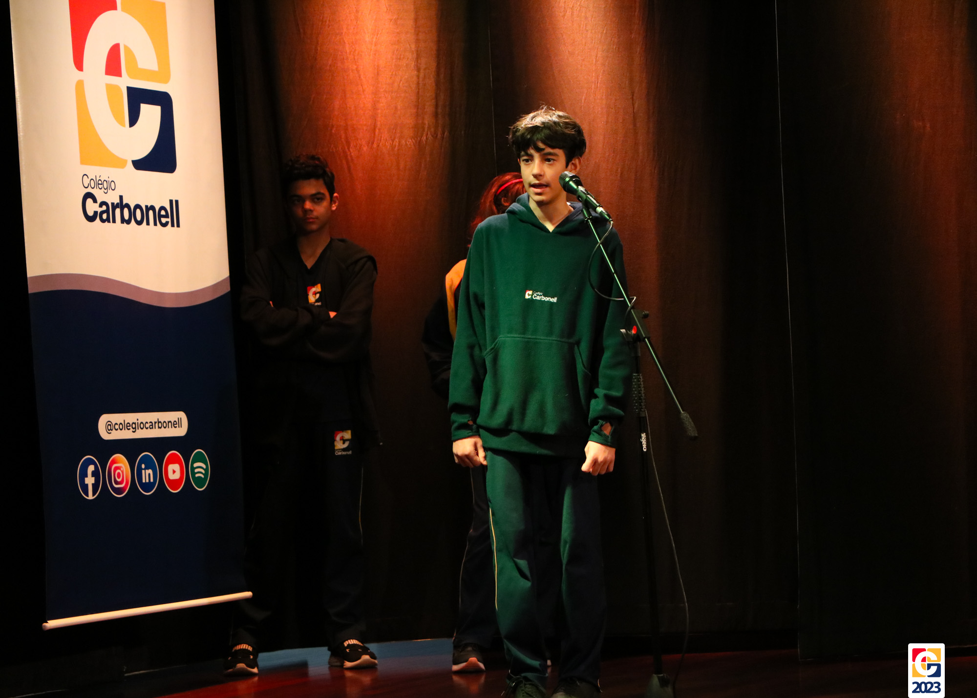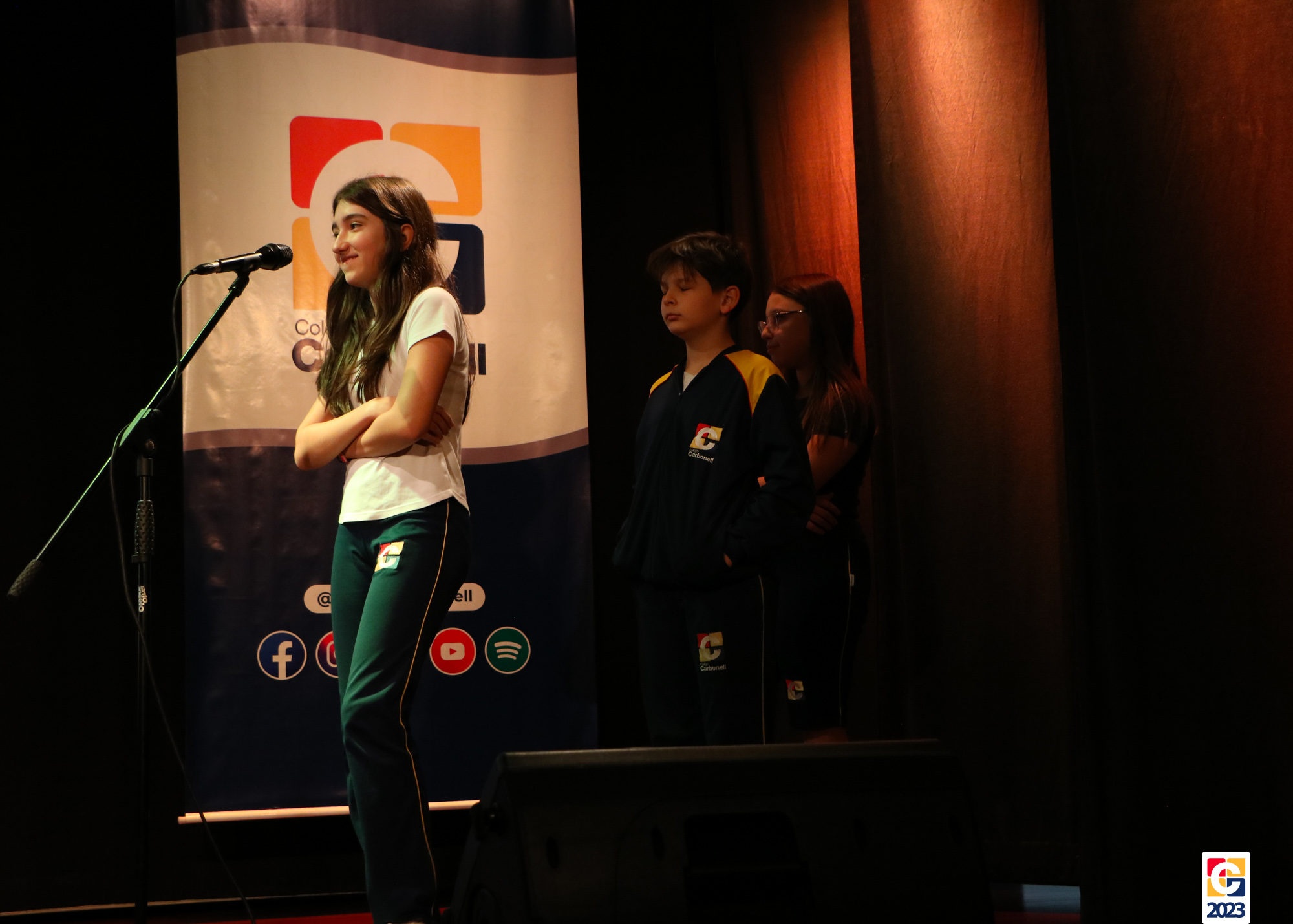 Mais uma vez, o Teatro Oswaldo Mazoni foi palco do Spelling Bee — competição de soletração em inglês para alunos dos Anos Iniciais ao Ensino Médio. A edição de 2023 aconteceu no último sábado (12), faz parte do currículo de inglês do Carbonell Language Program e foi iniciada já há alguns meses, em março, com etapas eliminatórias em grupos: 4º e 5º anos, 6º e 7º anos, 8º e 9º anos e, por fim, jovens do Ensino Médio. 💬