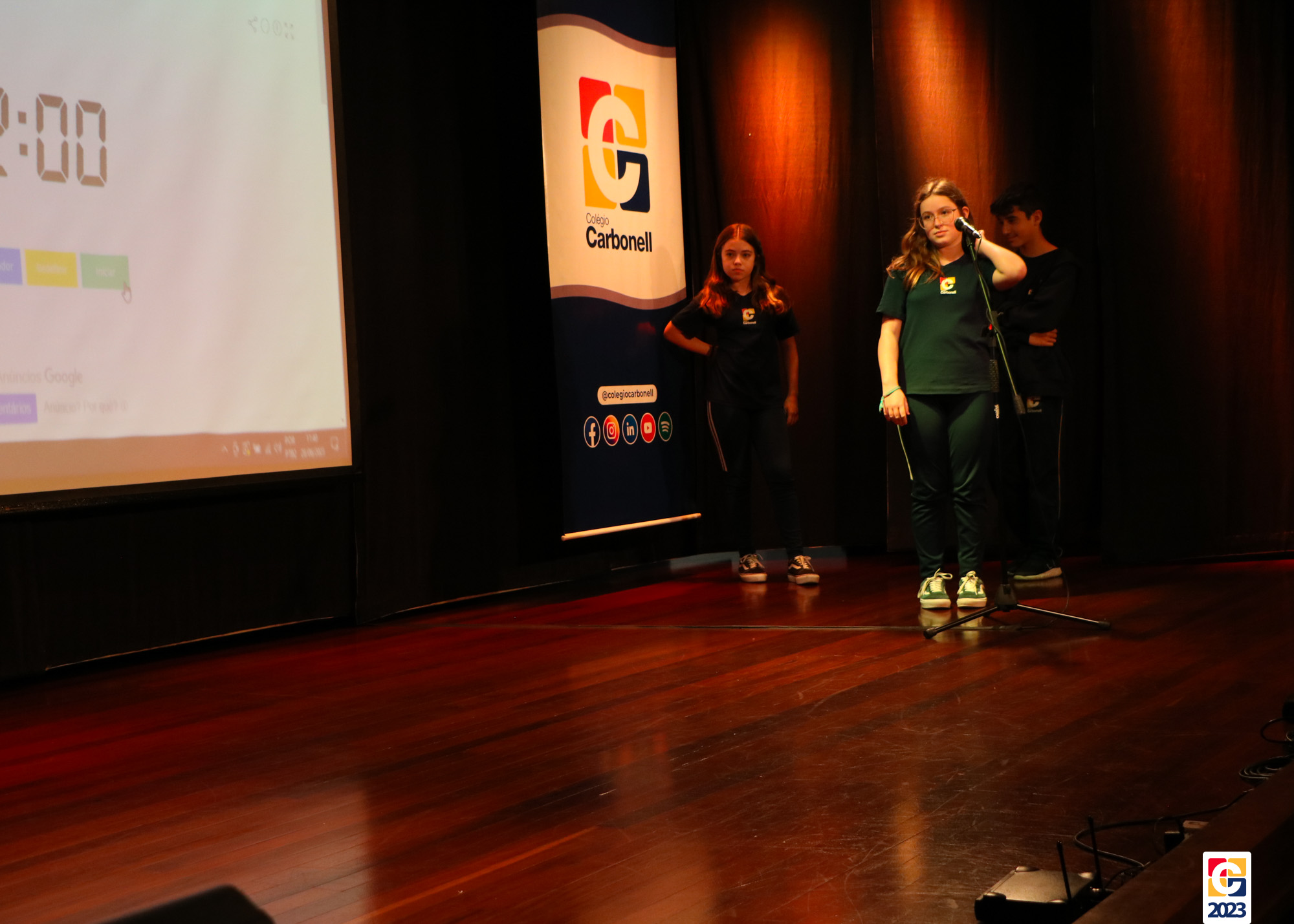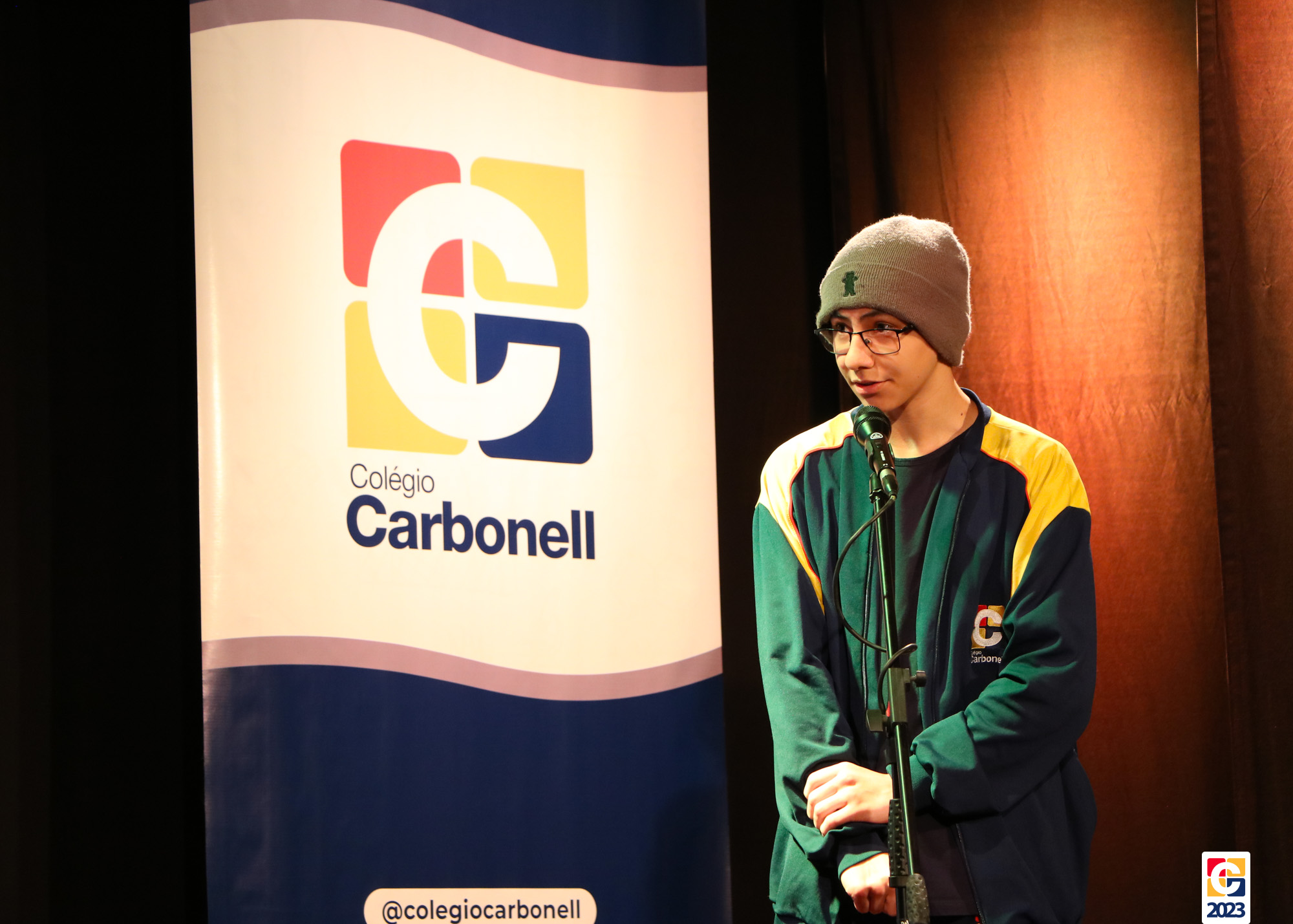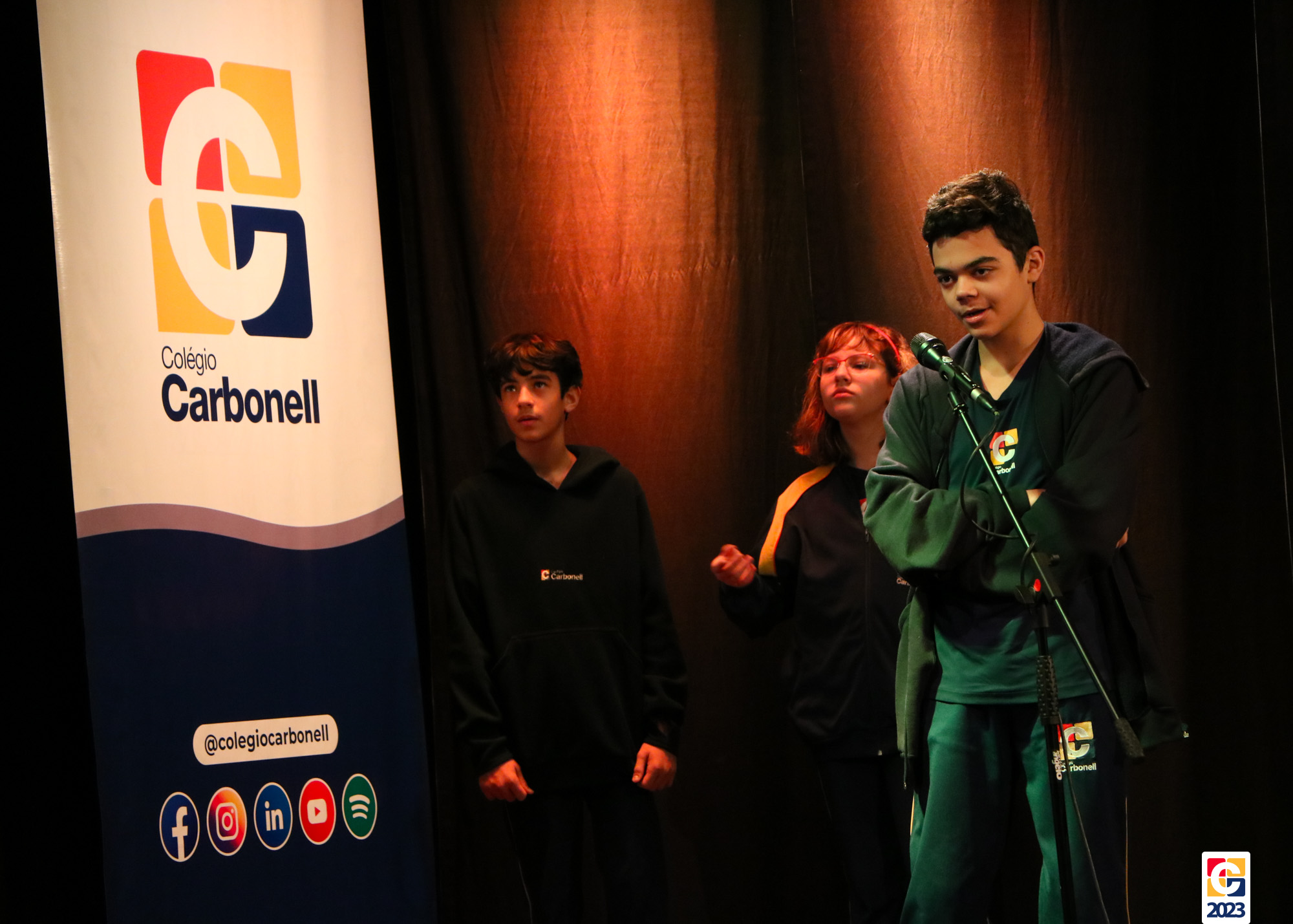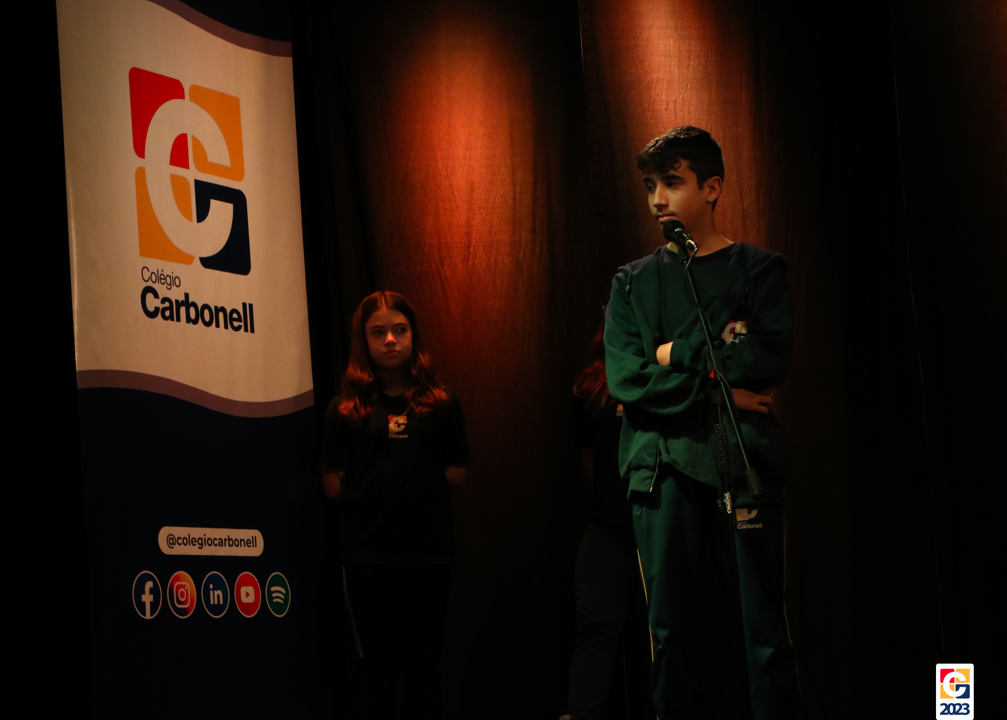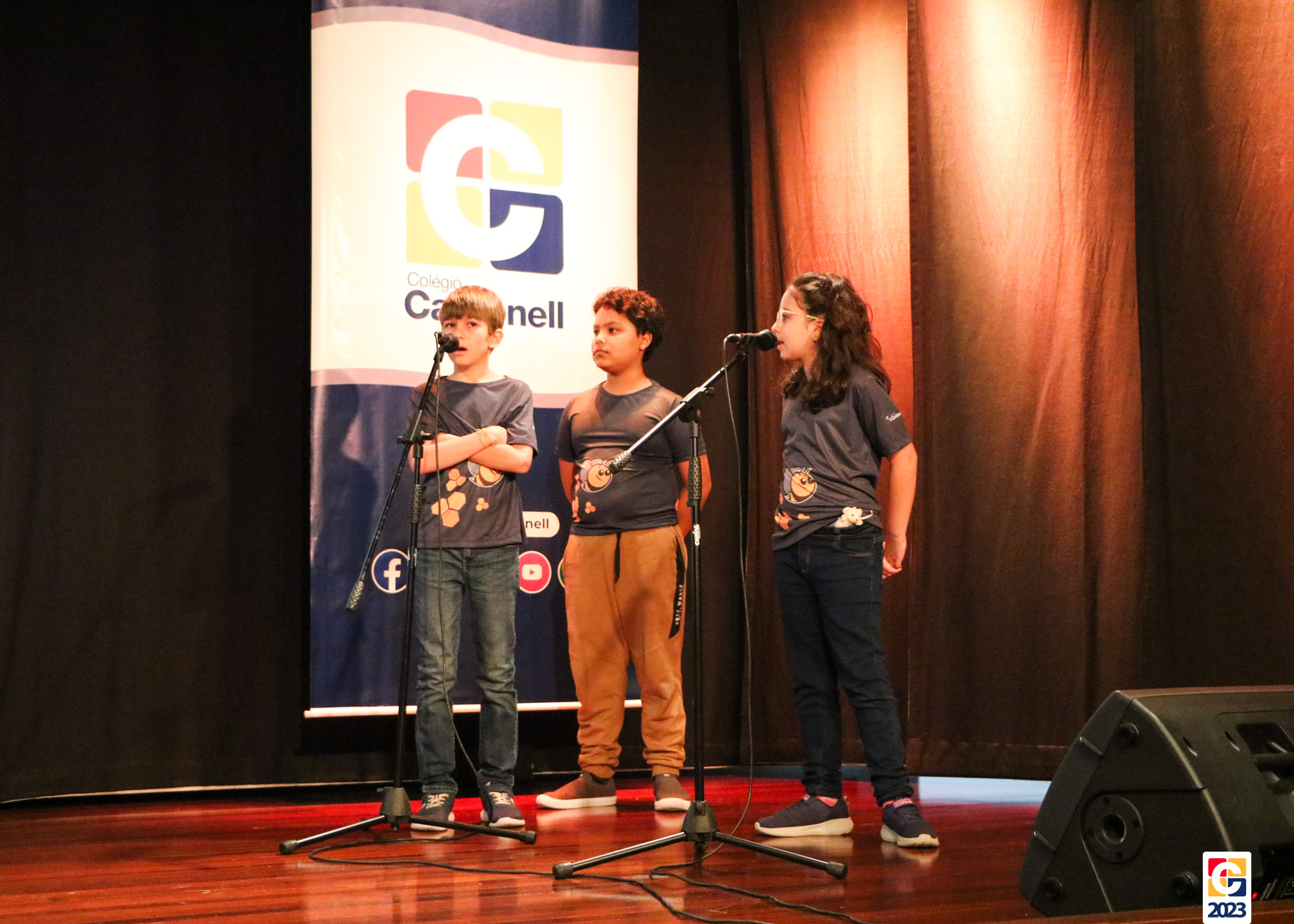 Mais uma vez, o Teatro Oswaldo Mazoni foi palco do Spelling Bee — competição de soletração em inglês para alunos dos Anos Iniciais ao Ensino Médio. A edição de 2023 aconteceu no último sábado (12), faz parte do currículo de inglês do Carbonell Language Program e foi iniciada já há alguns meses, em março, com etapas eliminatórias em grupos: 4º e 5º anos, 6º e 7º anos, 8º e 9º anos e, por fim, jovens do Ensino Médio. 💬