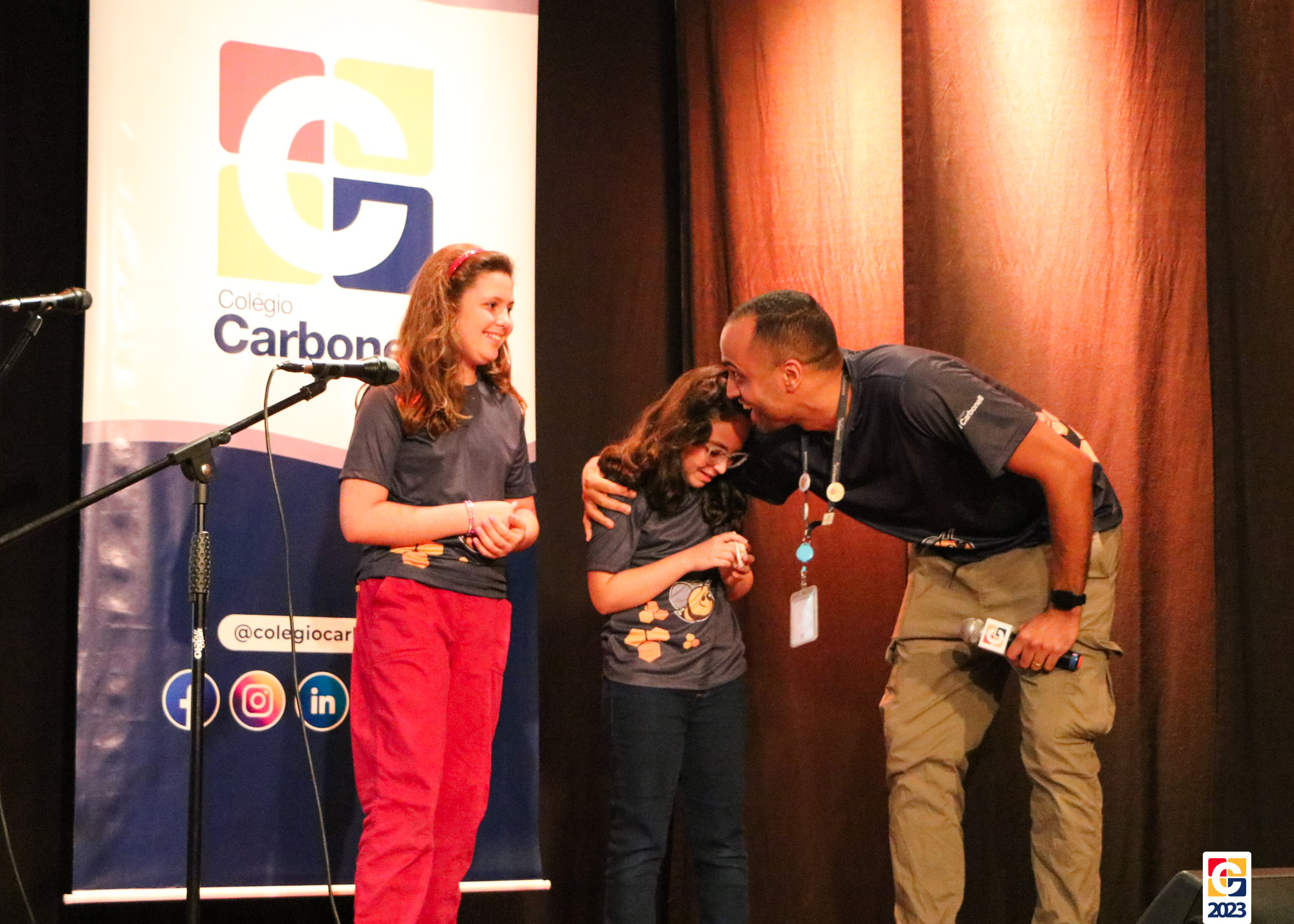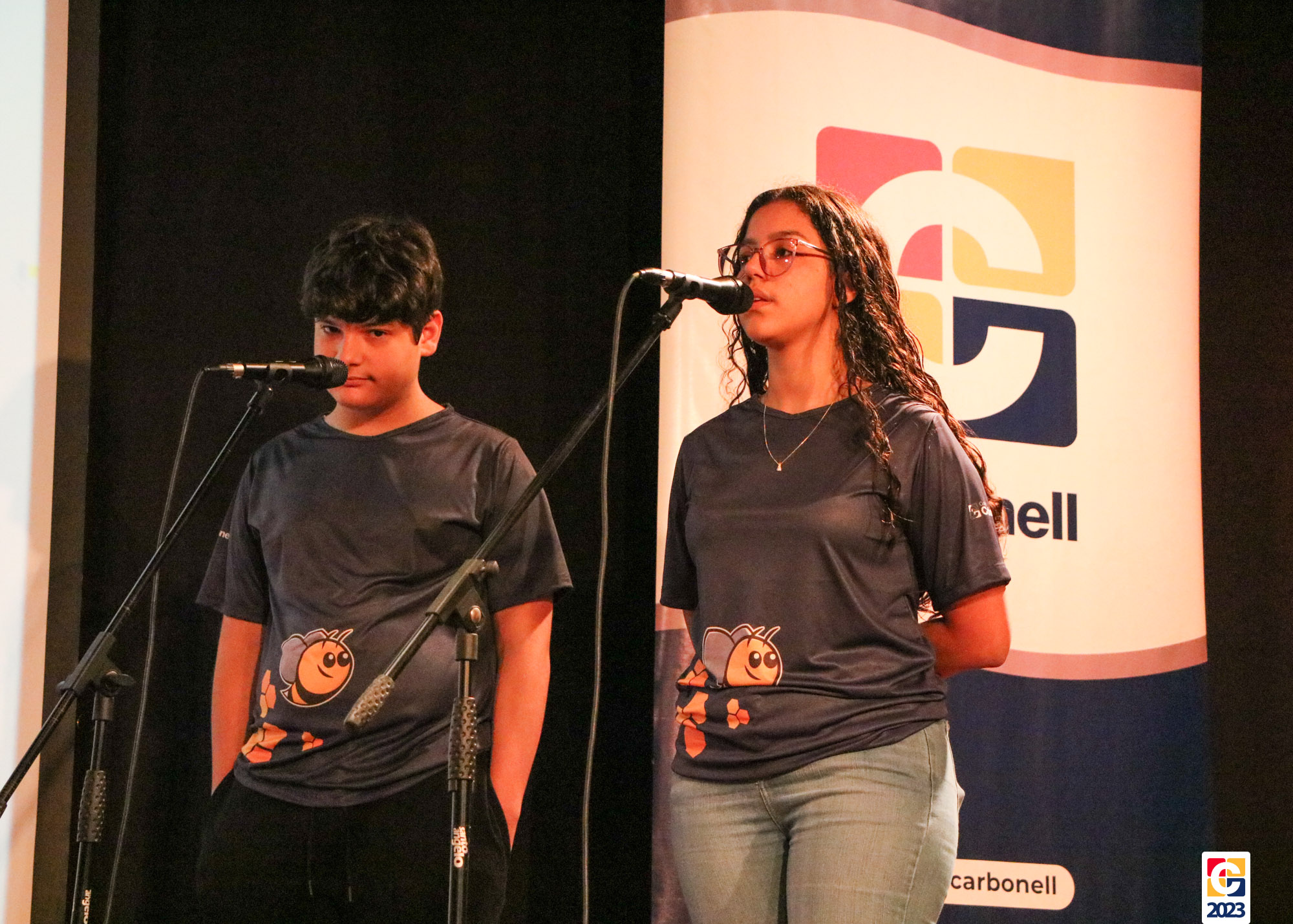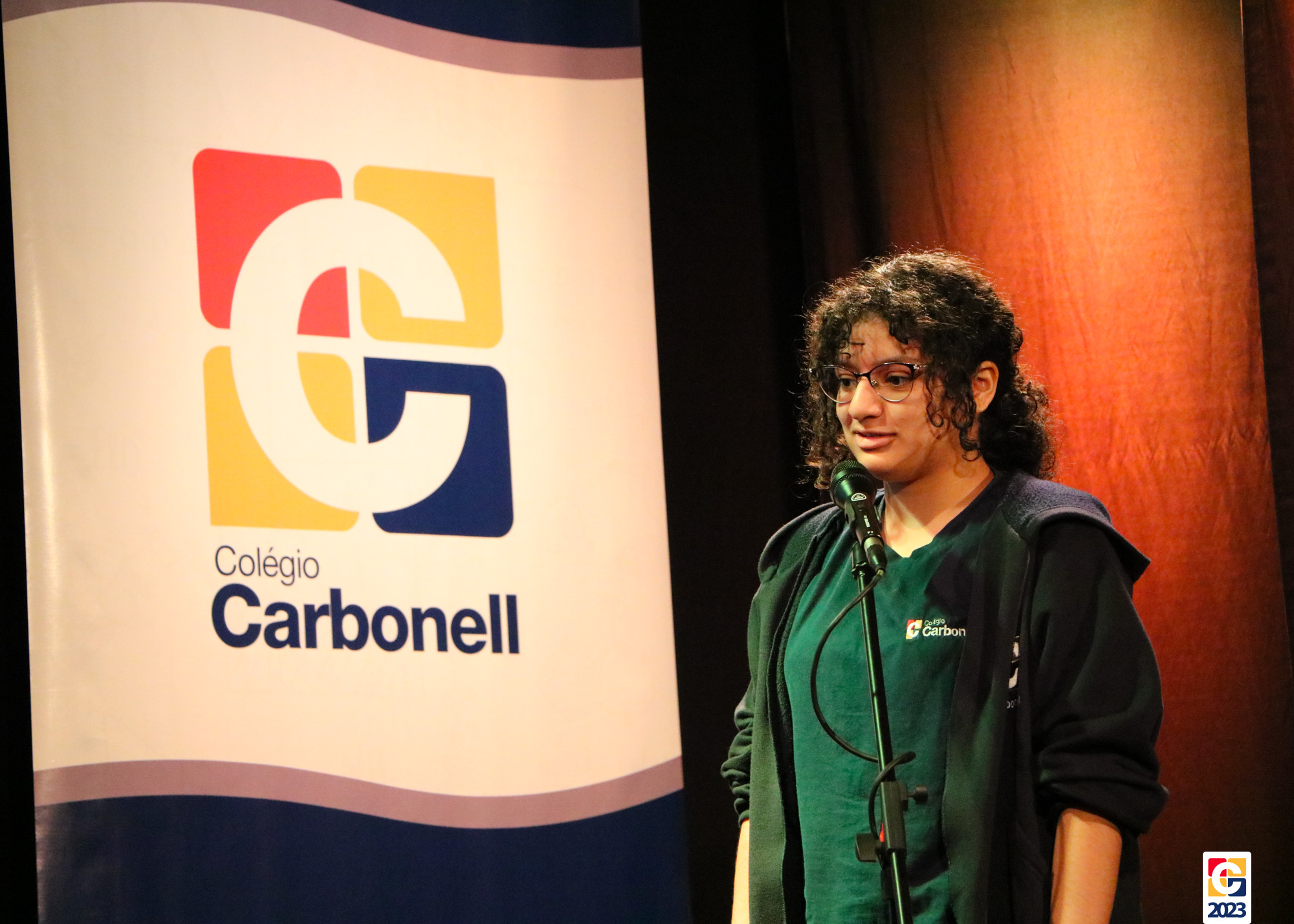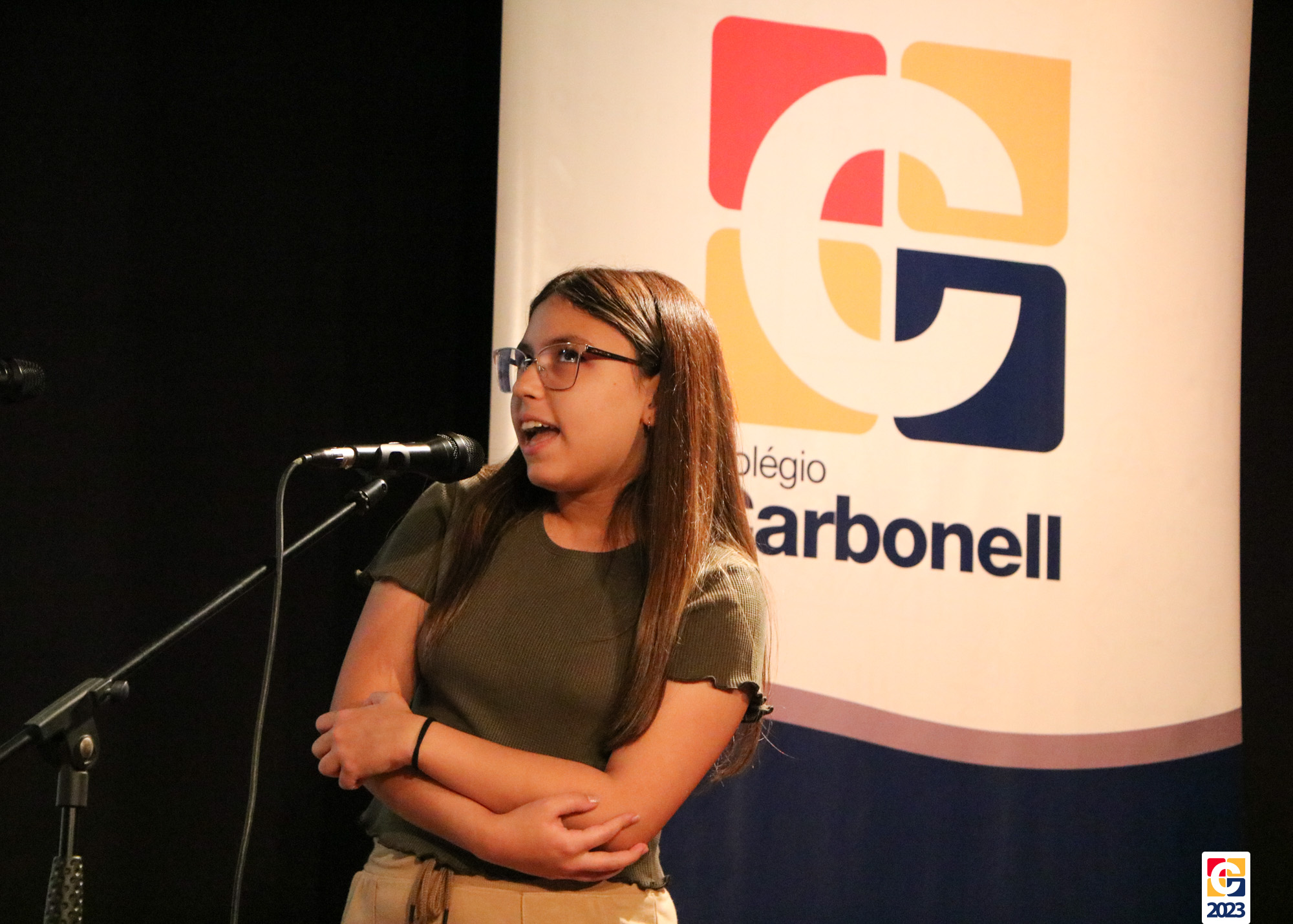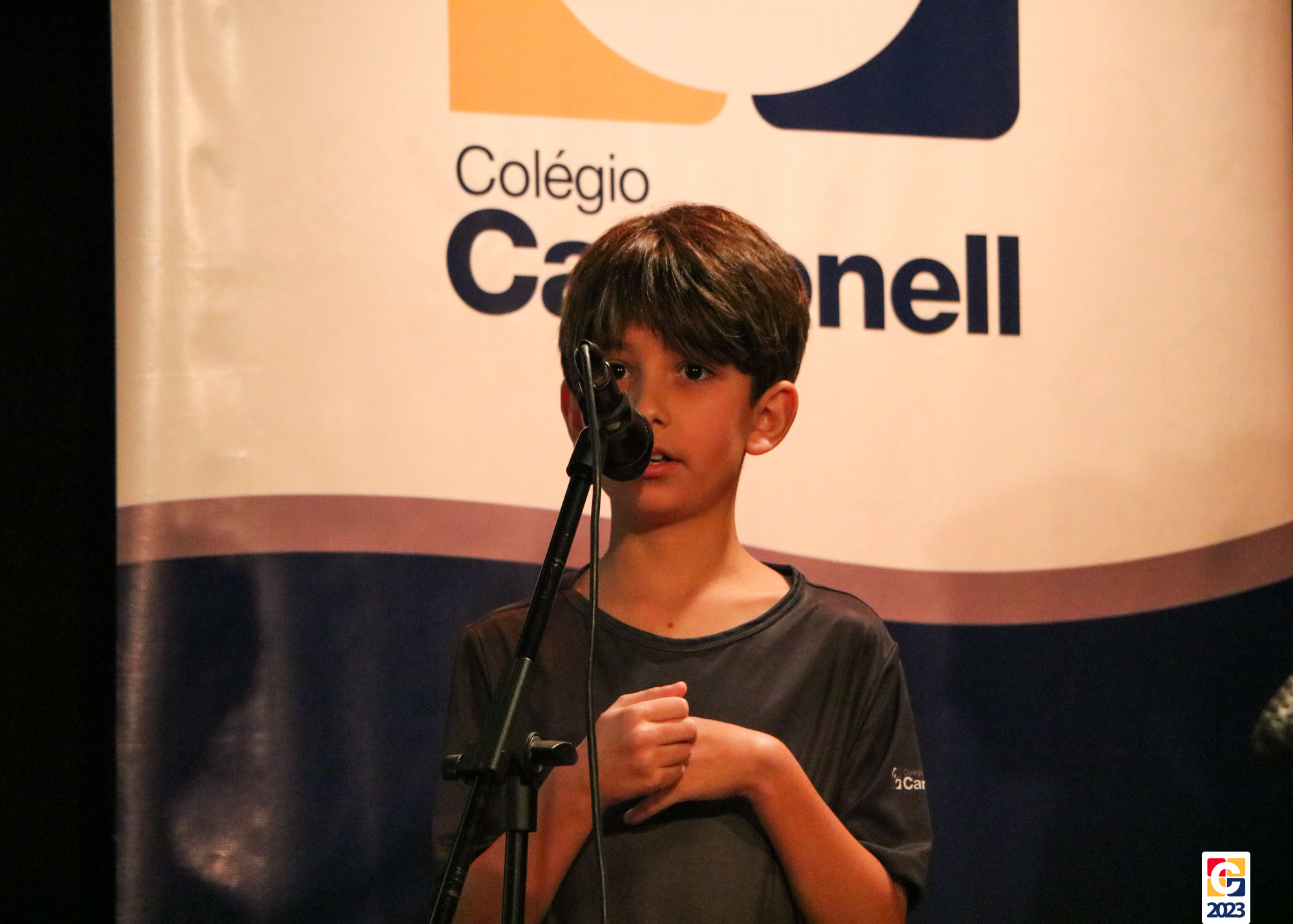 Mais uma vez, o Teatro Oswaldo Mazoni foi palco do Spelling Bee — competição de soletração em inglês para alunos dos Anos Iniciais ao Ensino Médio. A edição de 2023 aconteceu no último sábado (12), faz parte do currículo de inglês do Carbonell Language Program e foi iniciada já há alguns meses, em março, com etapas eliminatórias em grupos: 4º e 5º anos, 6º e 7º anos, 8º e 9º anos e, por fim, jovens do Ensino Médio. 💬