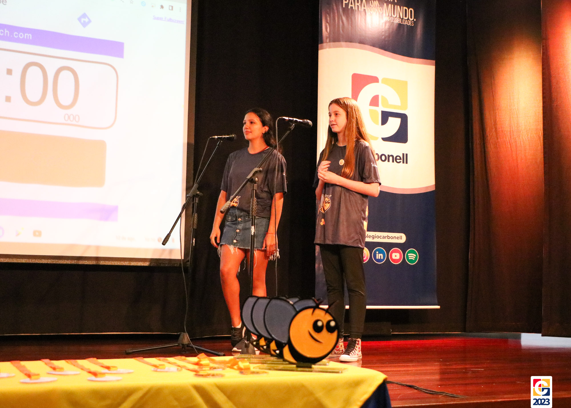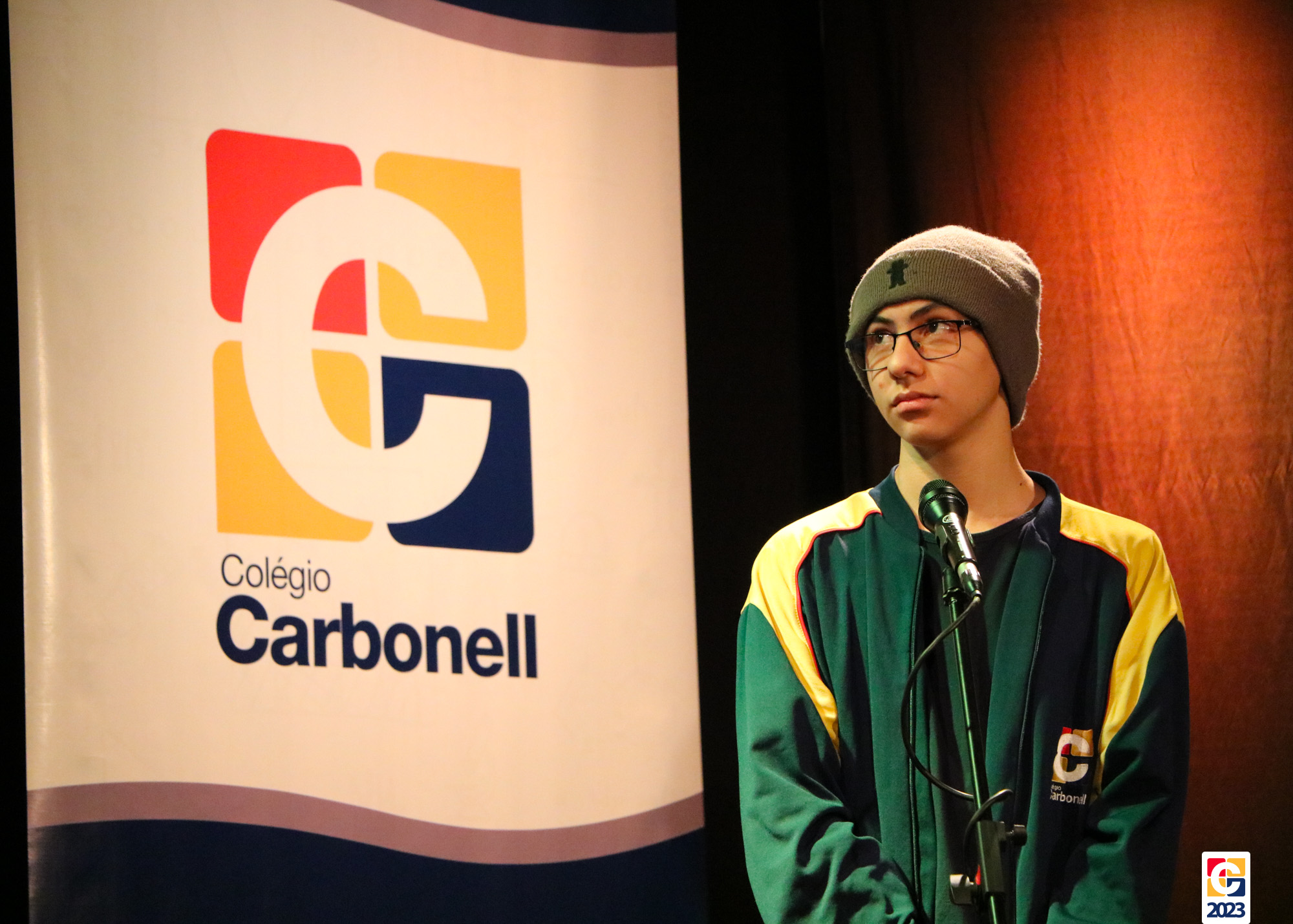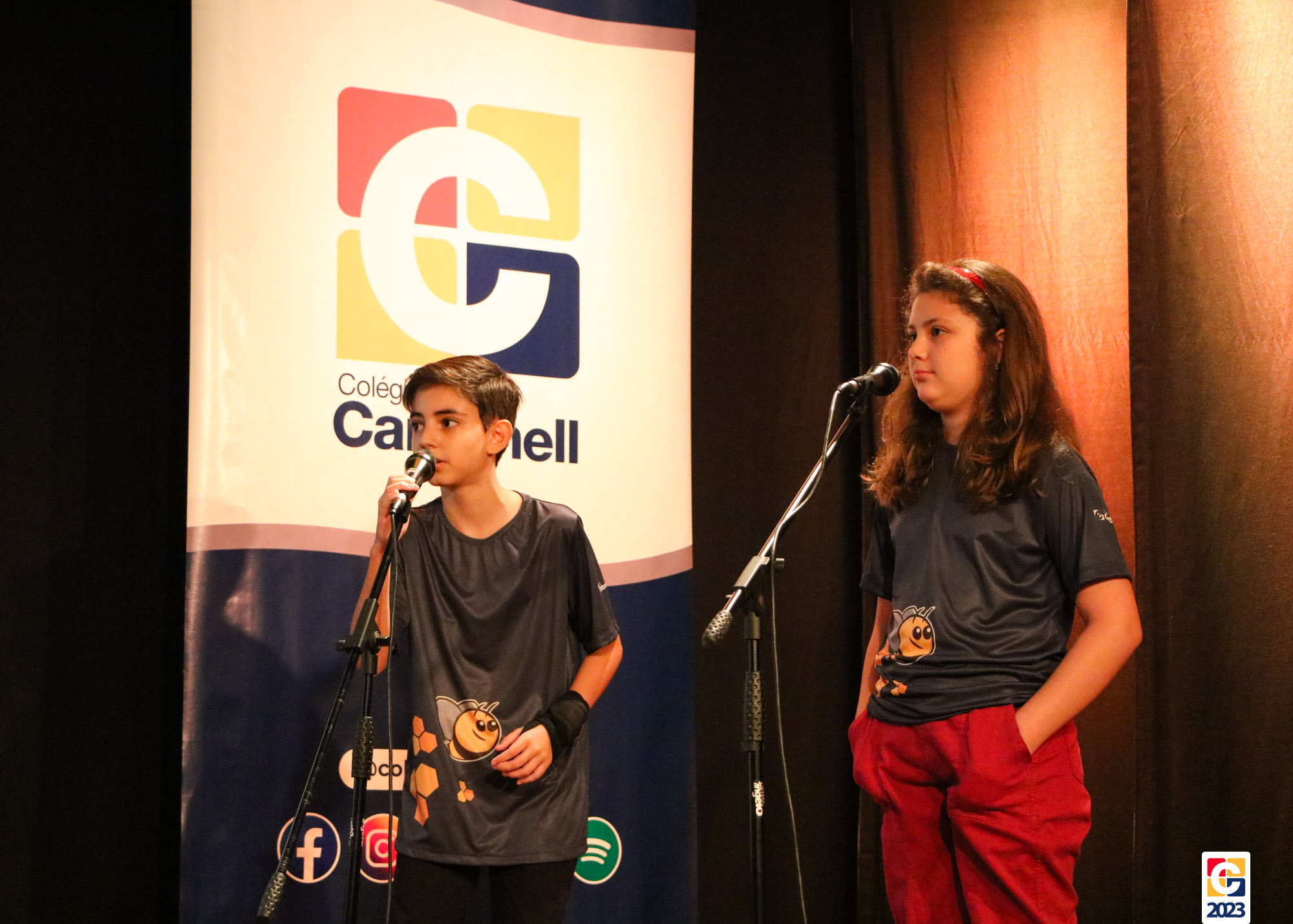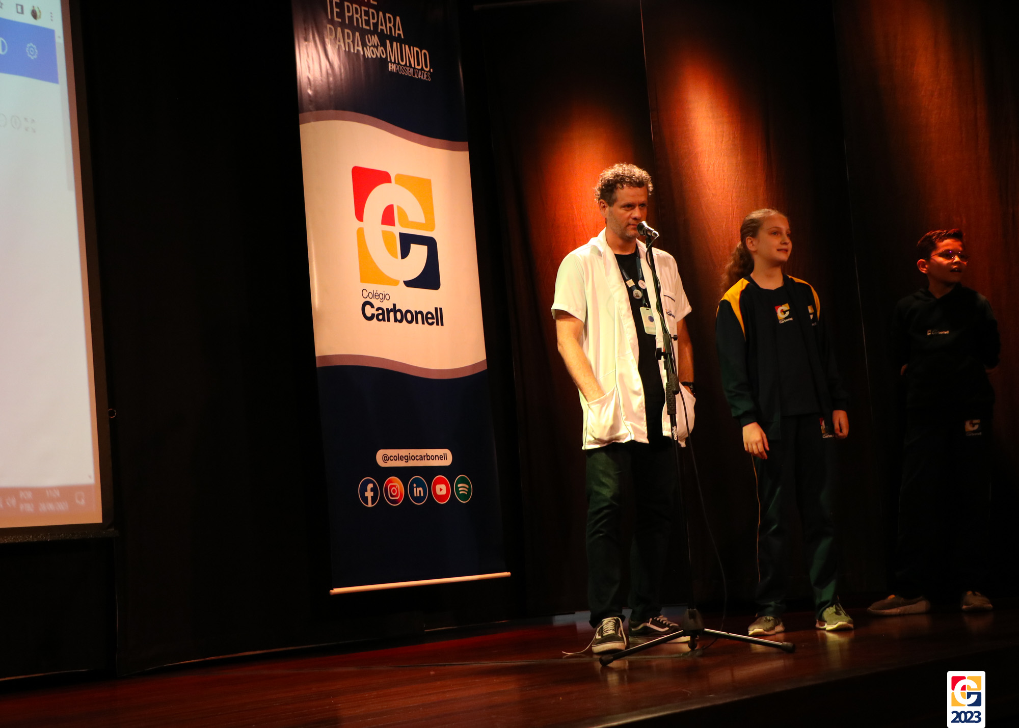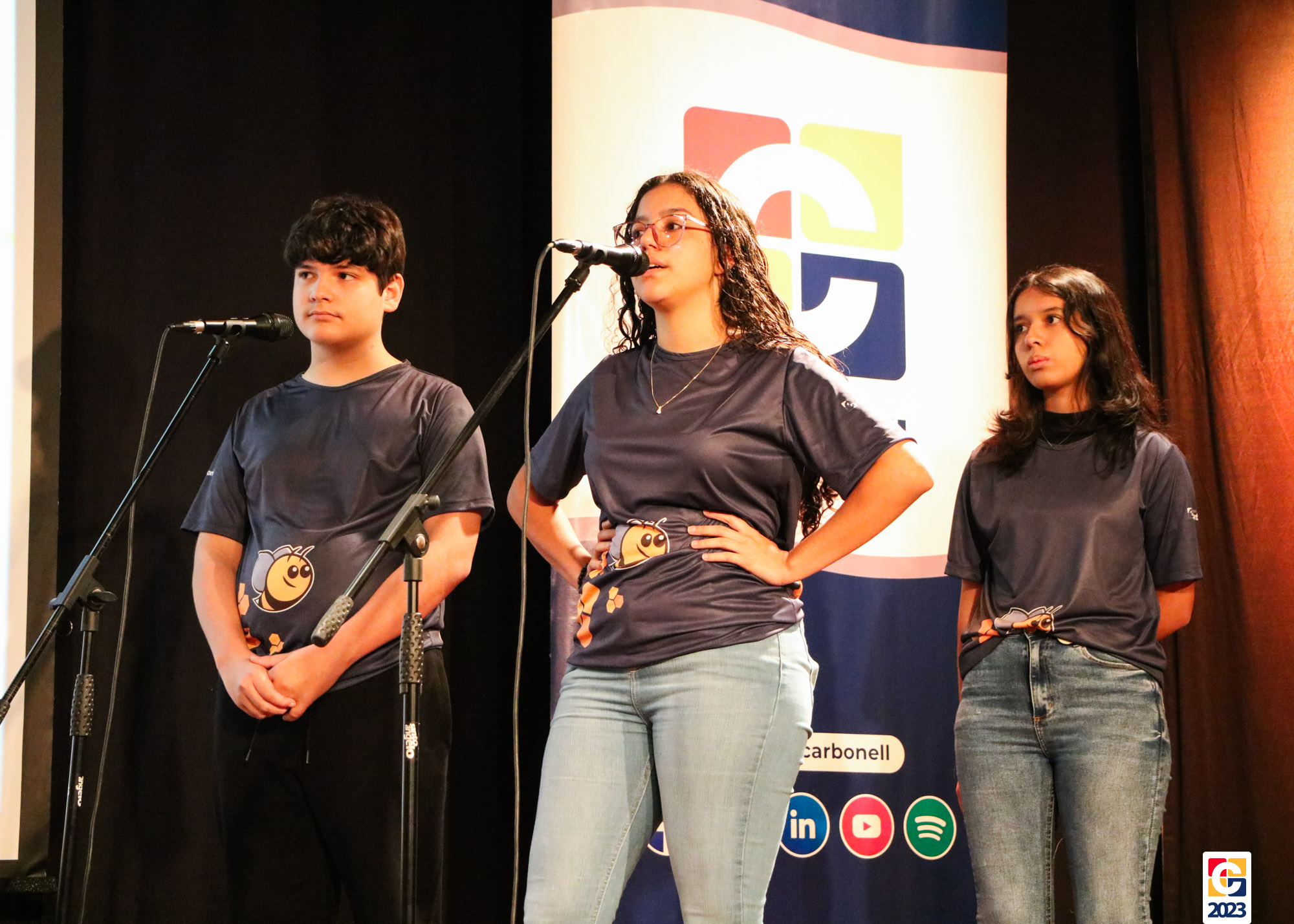 Mais uma vez, o Teatro Oswaldo Mazoni foi palco do Spelling Bee — competição de soletração em inglês para alunos dos Anos Iniciais ao Ensino Médio. A edição de 2023 aconteceu no último sábado (12), faz parte do currículo de inglês do Carbonell Language Program e foi iniciada já há alguns meses, em março, com etapas eliminatórias em grupos: 4º e 5º anos, 6º e 7º anos, 8º e 9º anos e, por fim, jovens do Ensino Médio. 💬