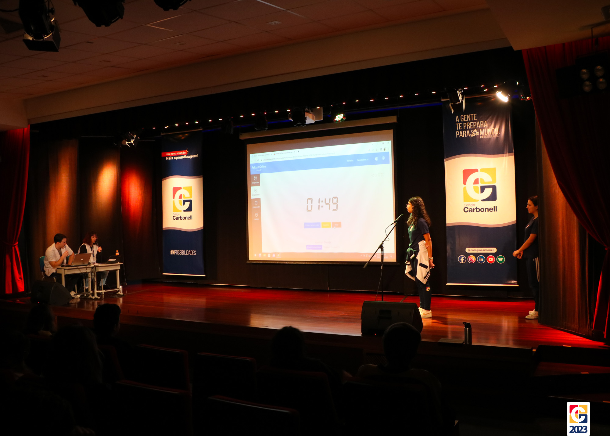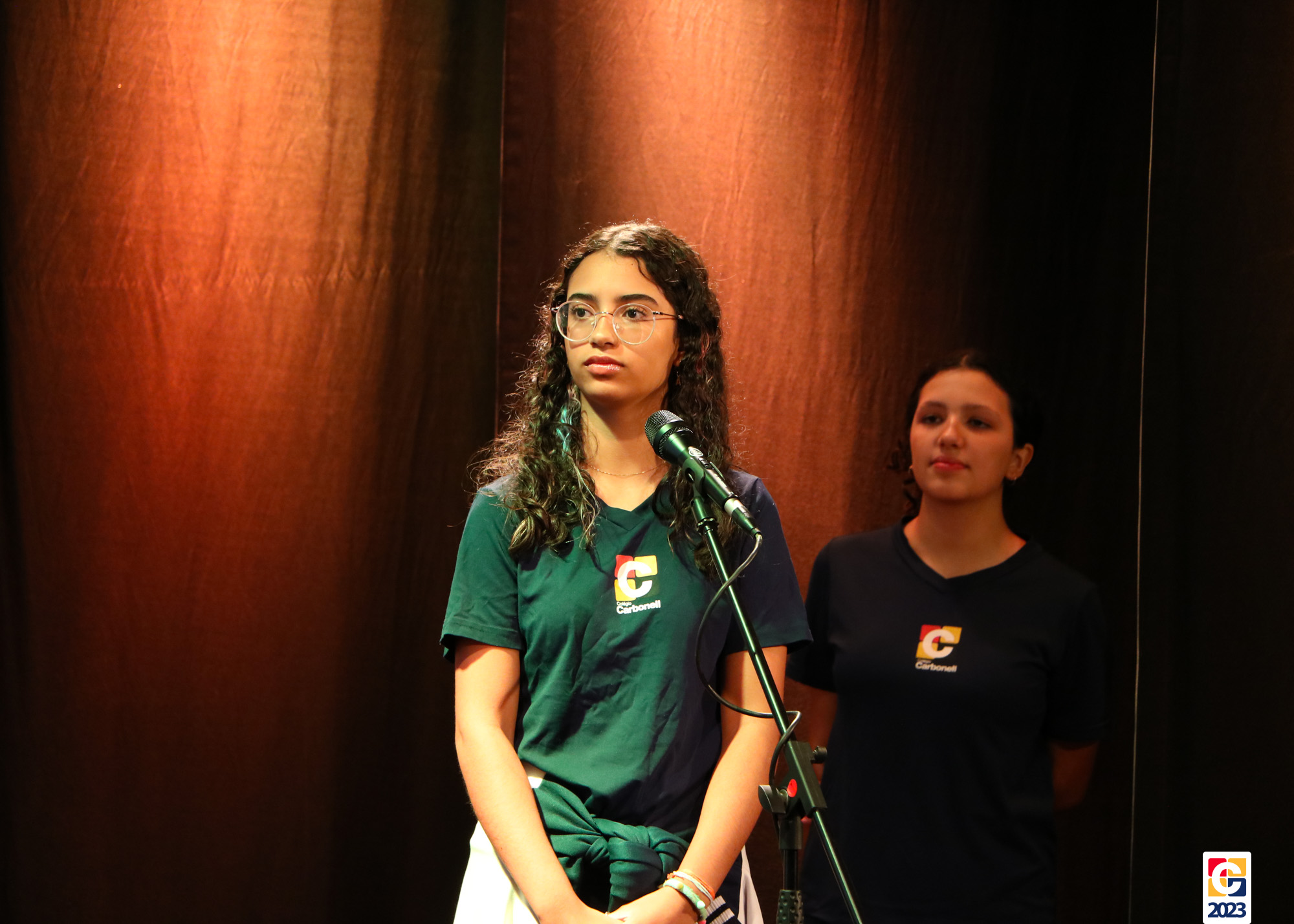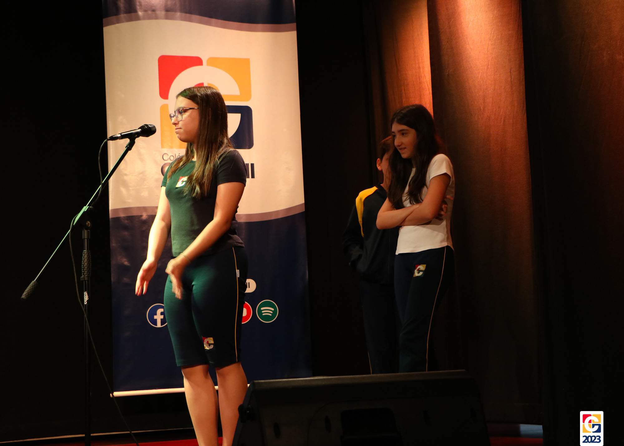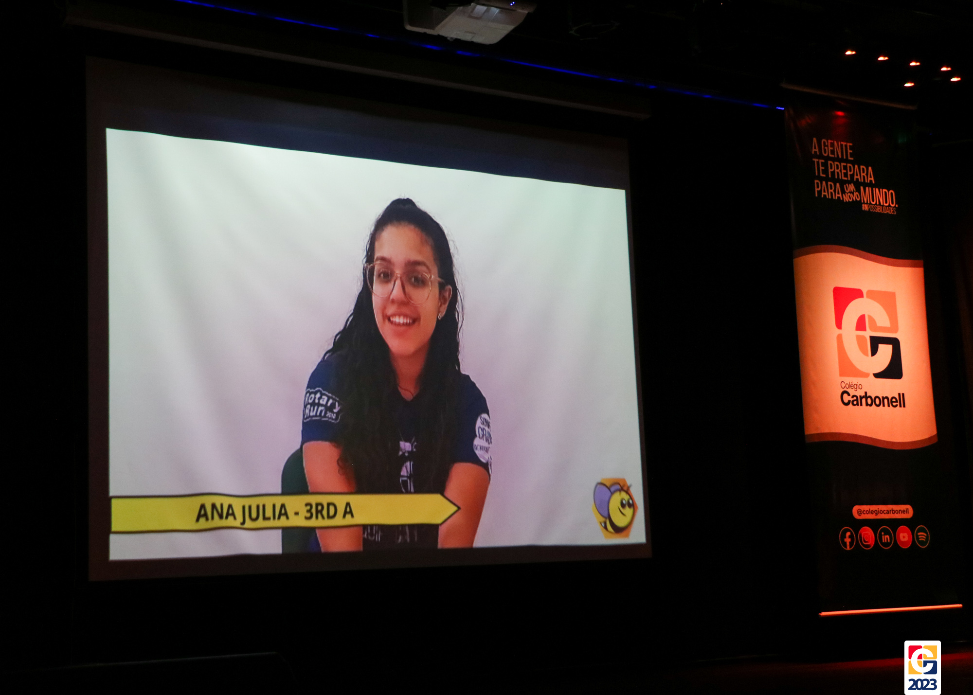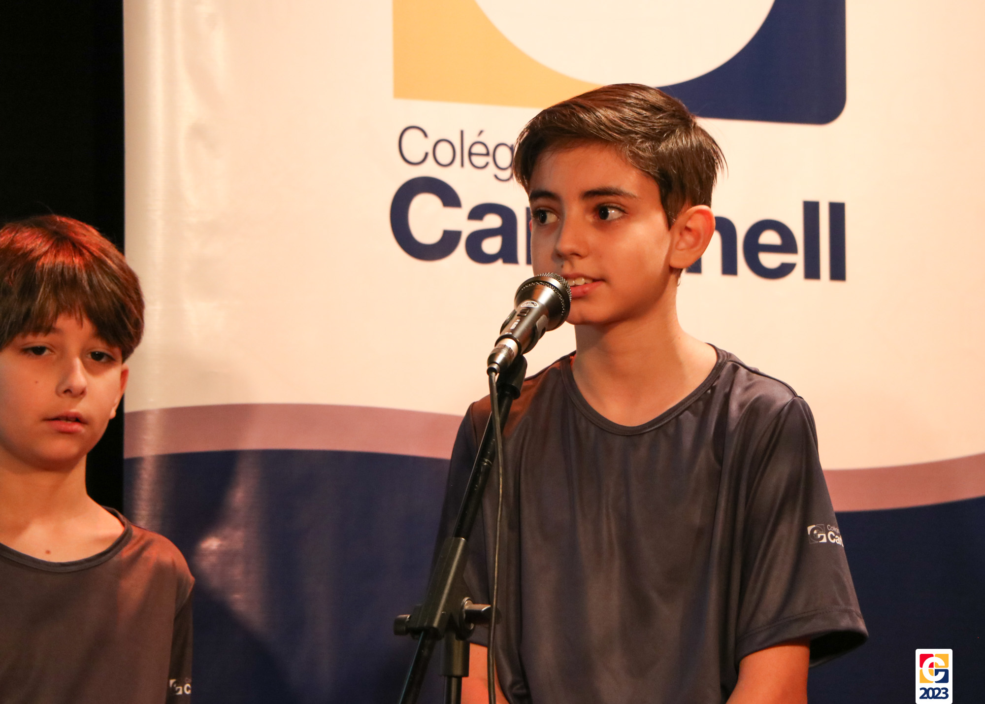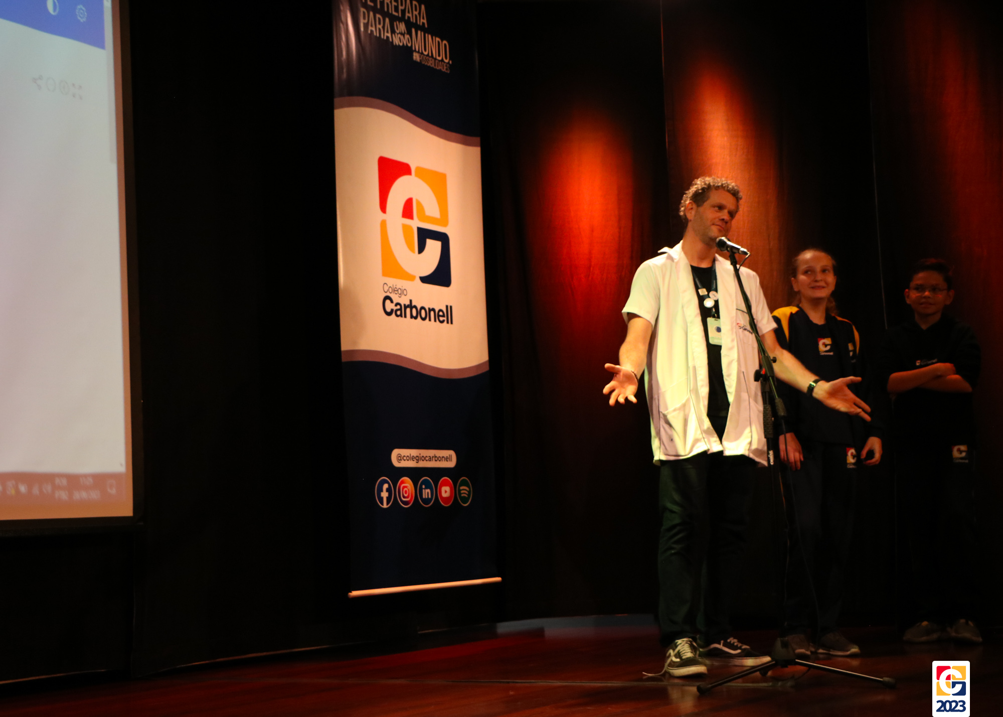 Mais uma vez, o Teatro Oswaldo Mazoni foi palco do Spelling Bee — competição de soletração em inglês para alunos dos Anos Iniciais ao Ensino Médio. A edição de 2023 aconteceu no último sábado (12), faz parte do currículo de inglês do Carbonell Language Program e foi iniciada já há alguns meses, em março, com etapas eliminatórias em grupos: 4º e 5º anos, 6º e 7º anos, 8º e 9º anos e, por fim, jovens do Ensino Médio. 💬