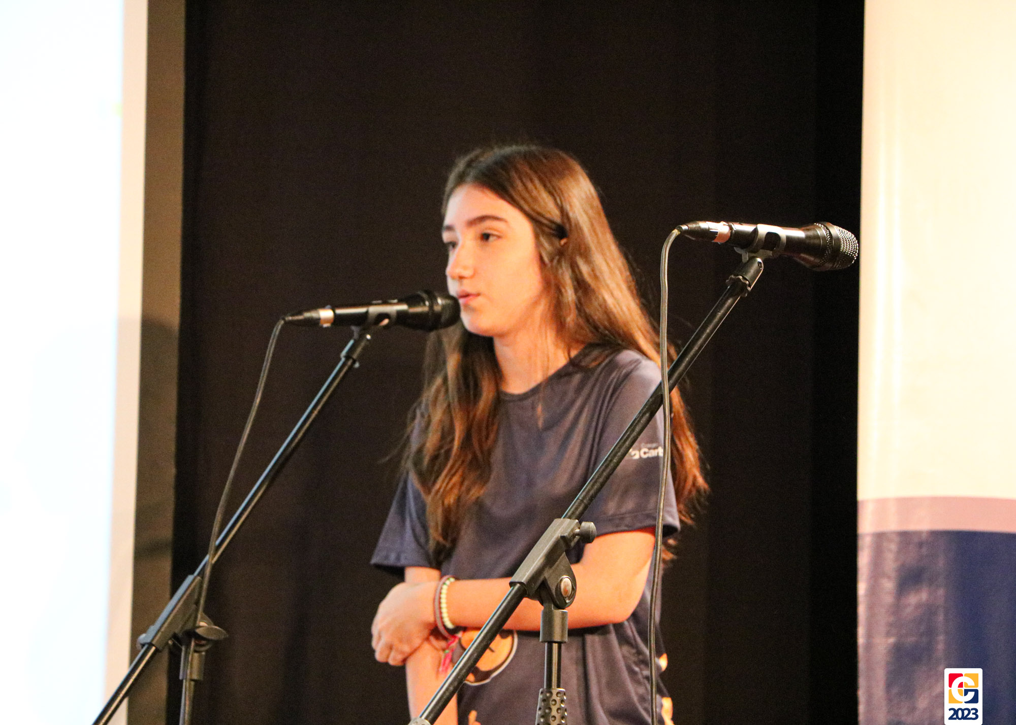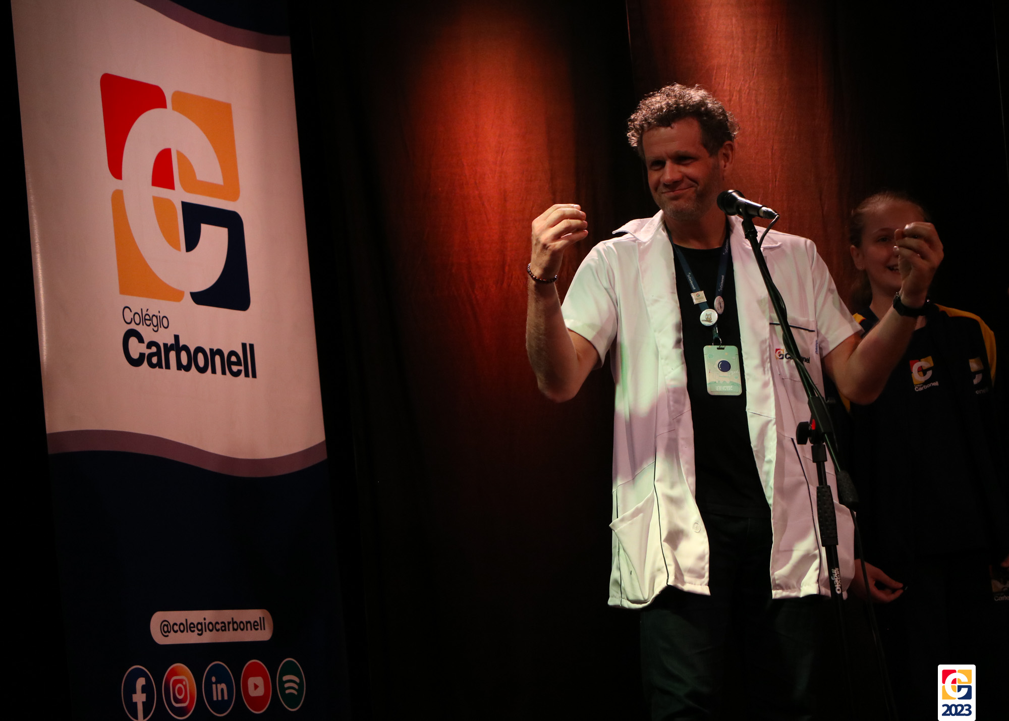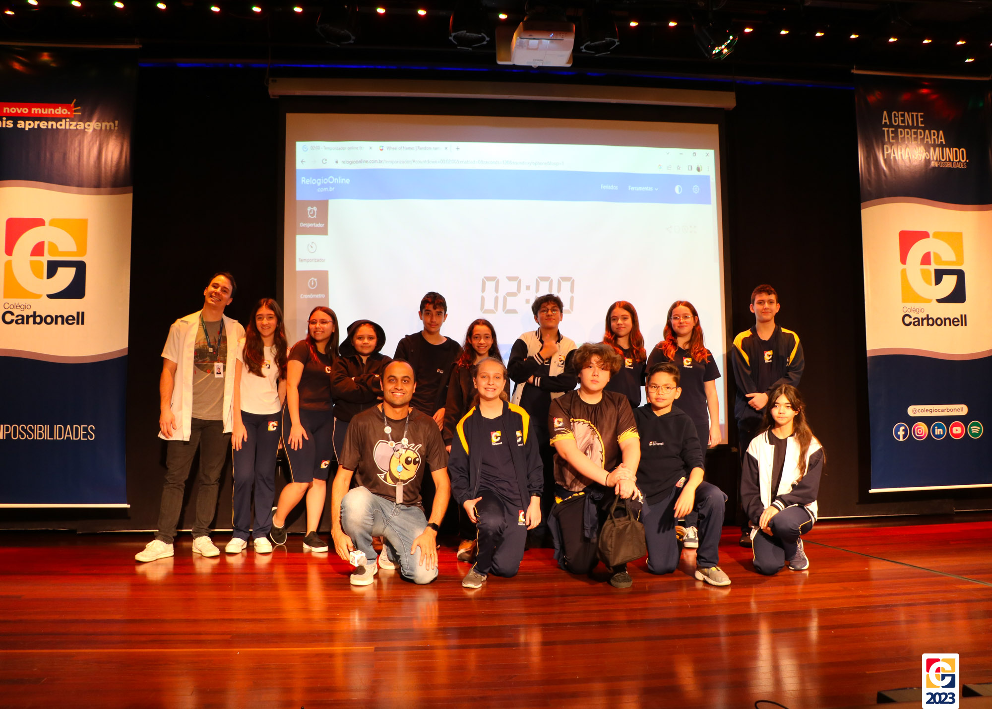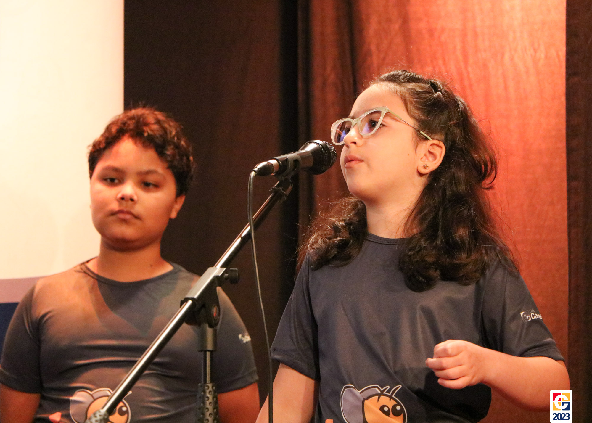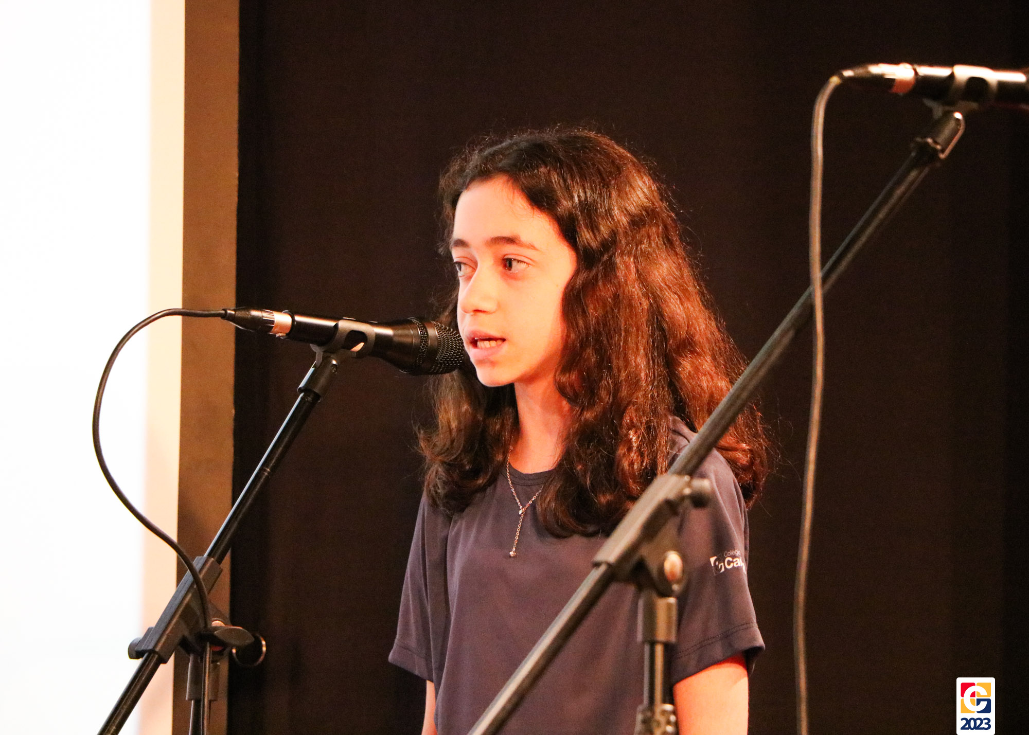 Mais uma vez, o Teatro Oswaldo Mazoni foi palco do Spelling Bee — competição de soletração em inglês para alunos dos Anos Iniciais ao Ensino Médio. A edição de 2023 aconteceu no último sábado (12), faz parte do currículo de inglês do Carbonell Language Program e foi iniciada já há alguns meses, em março, com etapas eliminatórias em grupos: 4º e 5º anos, 6º e 7º anos, 8º e 9º anos e, por fim, jovens do Ensino Médio. 💬