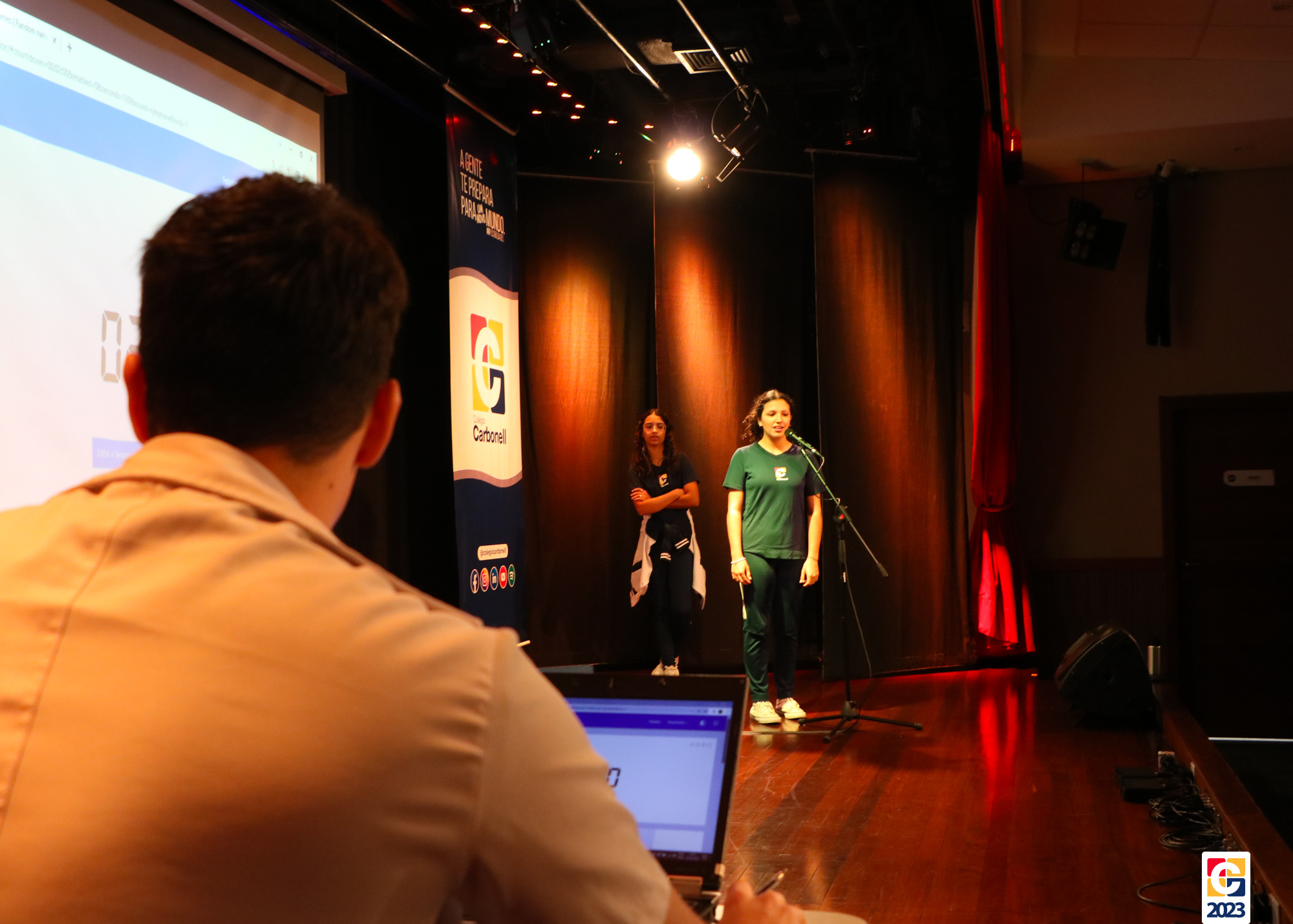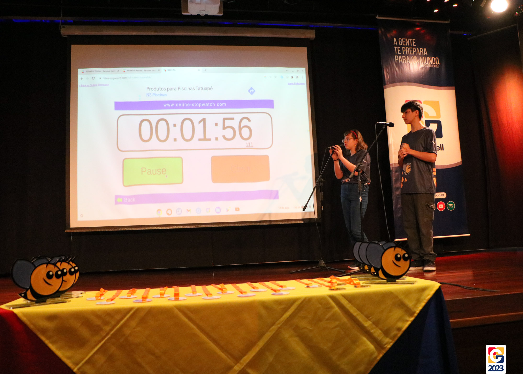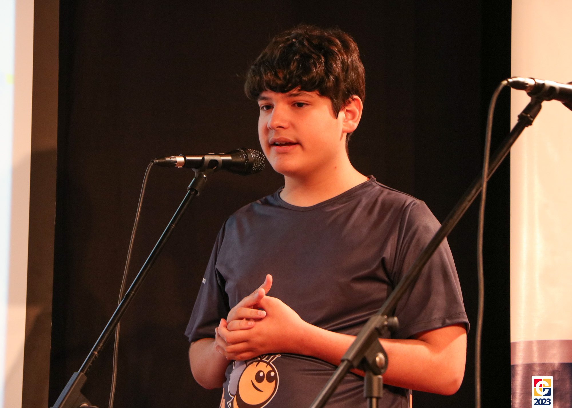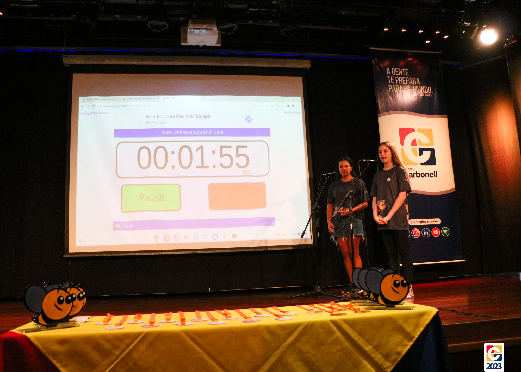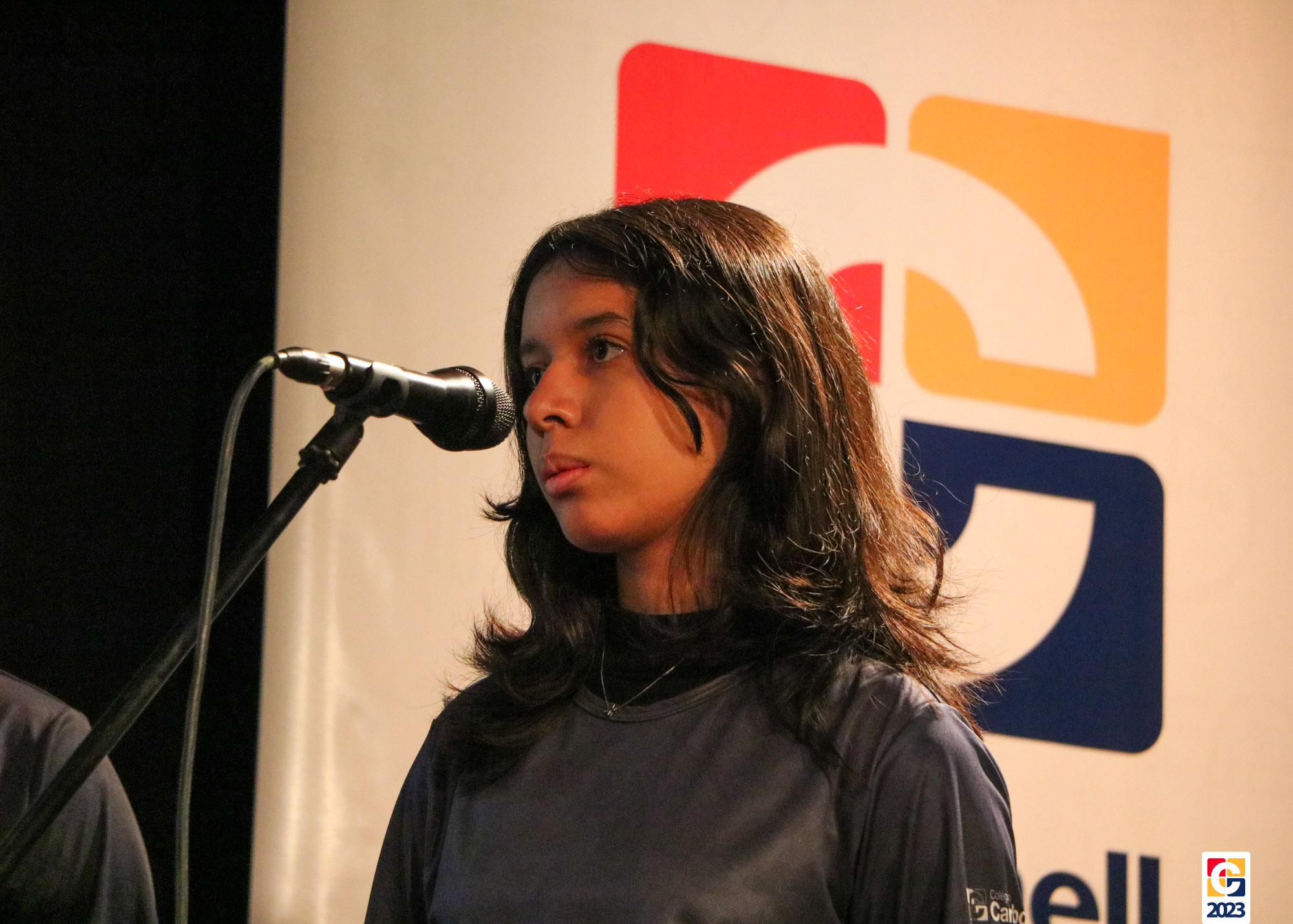 Mais uma vez, o Teatro Oswaldo Mazoni foi palco do Spelling Bee — competição de soletração em inglês para alunos dos Anos Iniciais ao Ensino Médio. A edição de 2023 aconteceu no último sábado (12), faz parte do currículo de inglês do Carbonell Language Program e foi iniciada já há alguns meses, em março, com etapas eliminatórias em grupos: 4º e 5º anos, 6º e 7º anos, 8º e 9º anos e, por fim, jovens do Ensino Médio. 💬