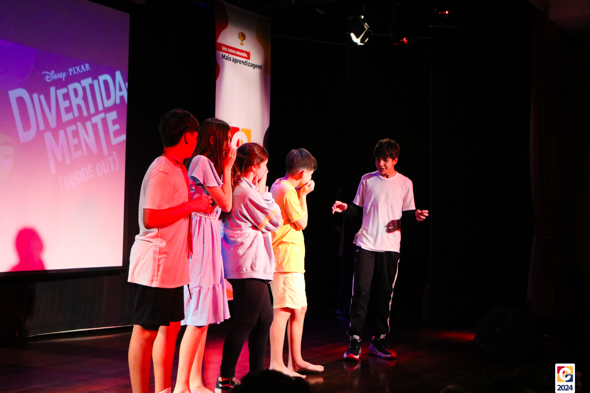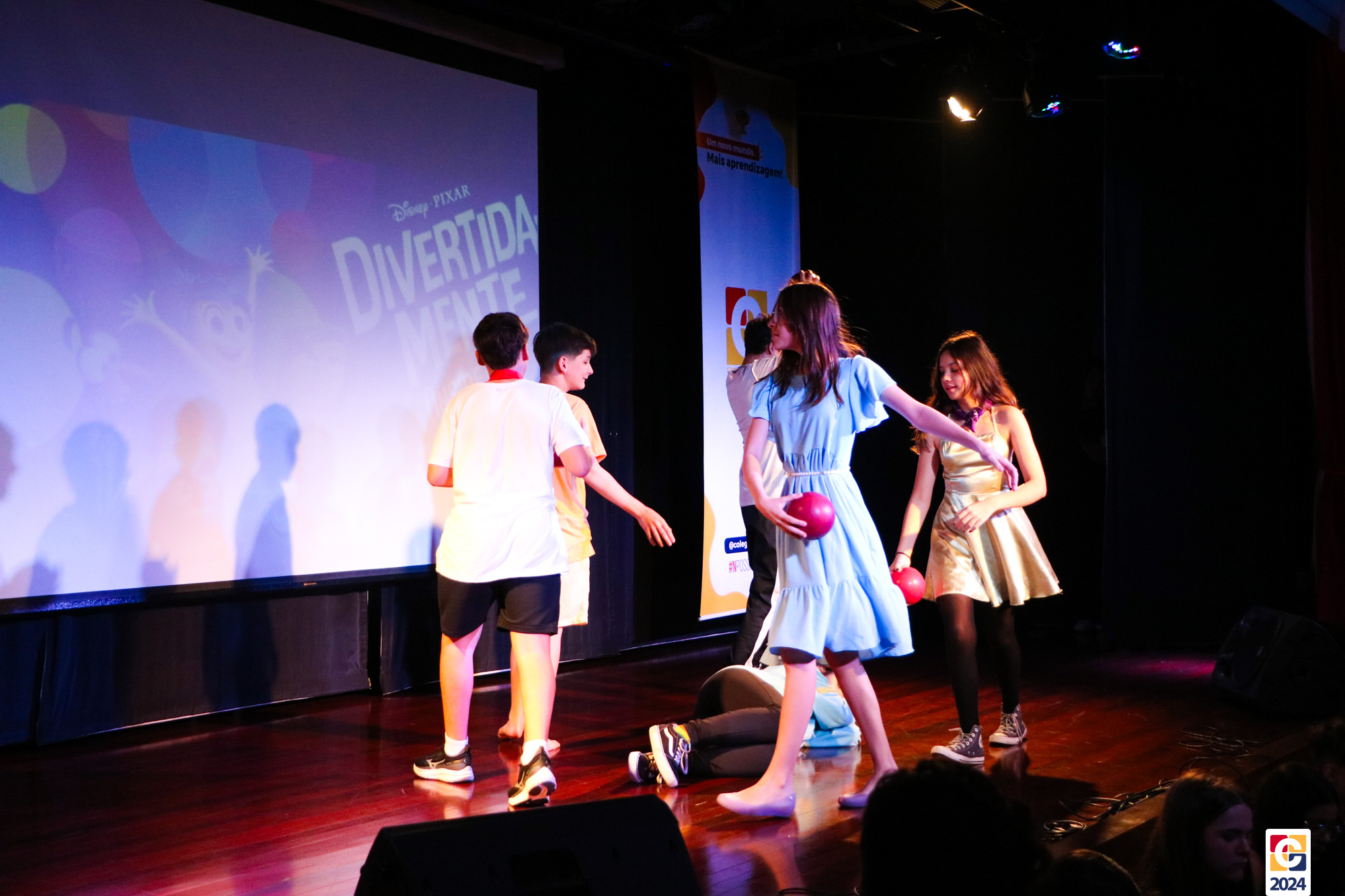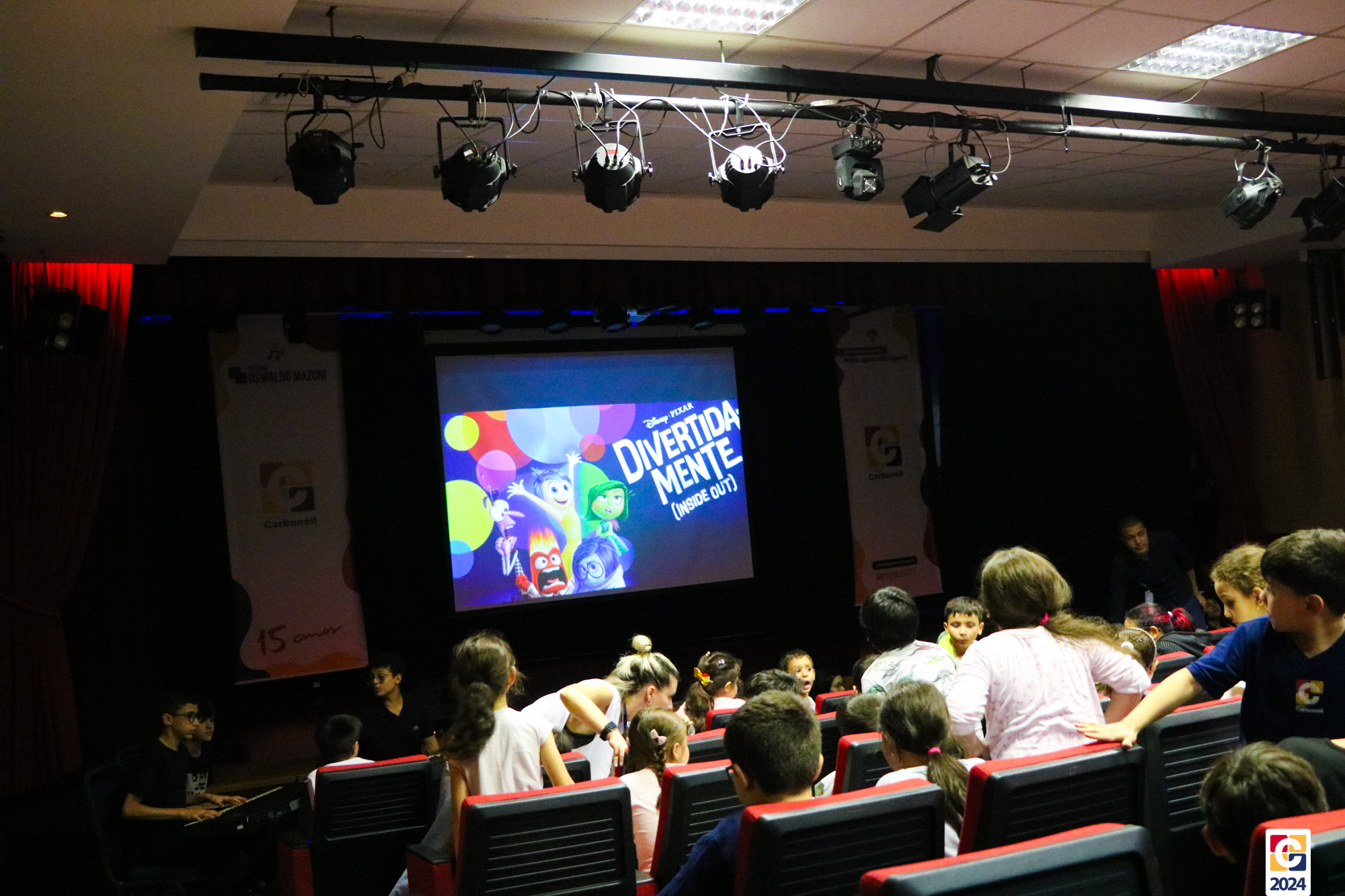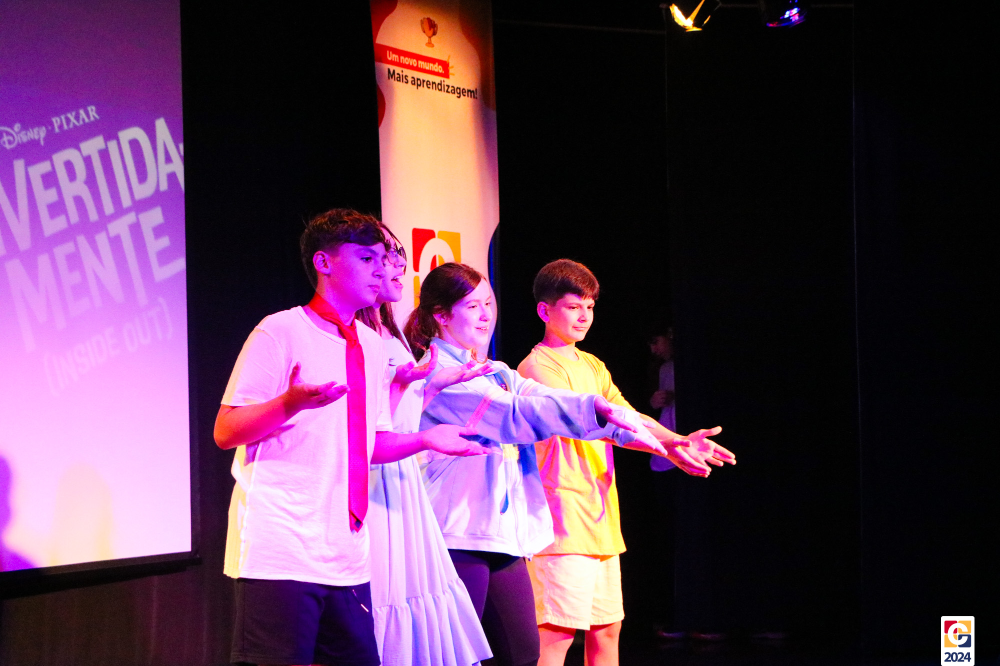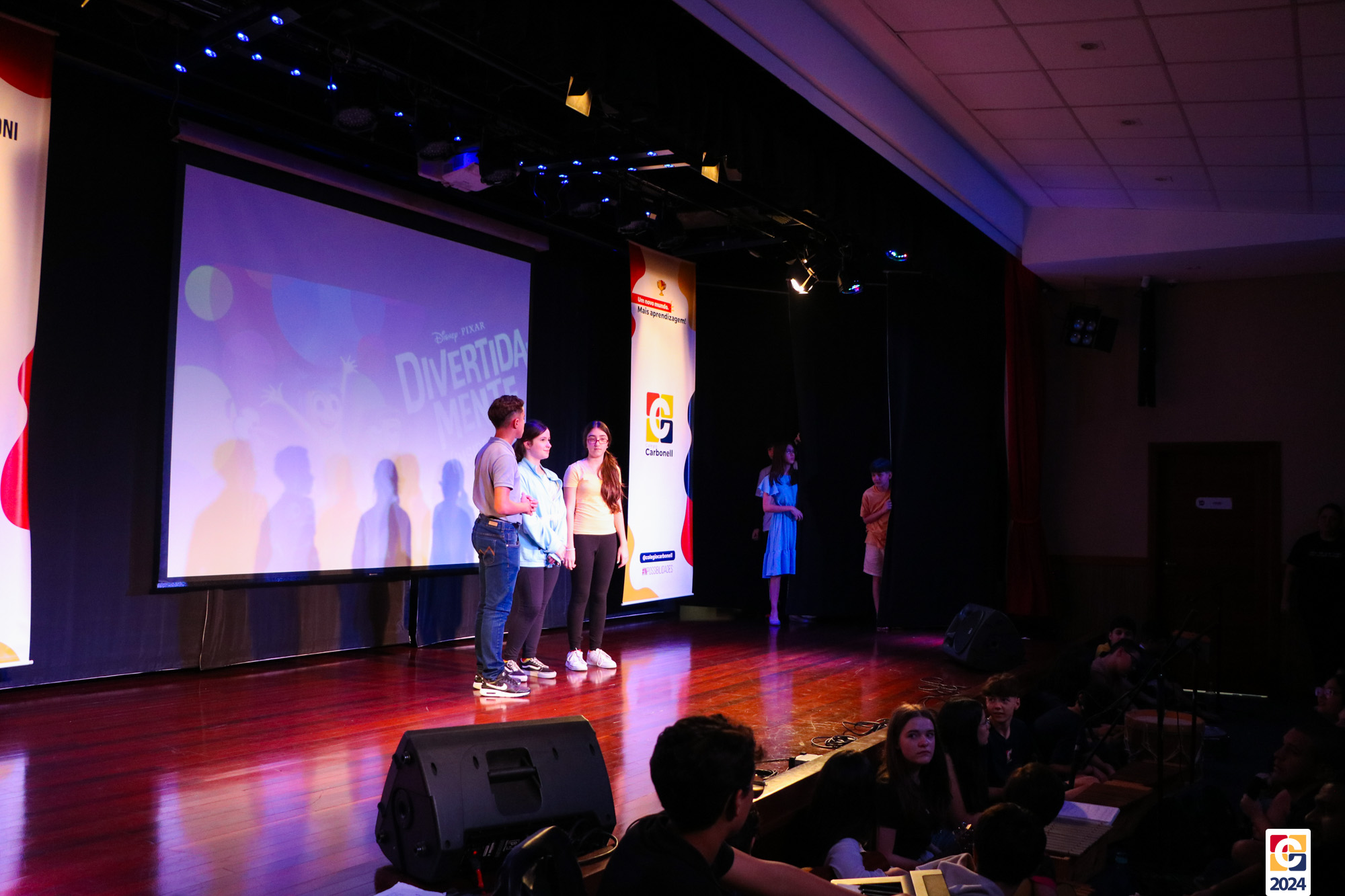 Os estudantes dos 8º anos do Colégio Carbonell protagonizaram uma apresentação especial da peça Divertida Mente no Teatro Oswaldo Mazoni, direcionada para as crianças dos Anos Iniciais. A história gira em torno de Riley, uma menina que enfrenta mudanças em sua vida, e suas emoções personificadas — Alegria, Tristeza, Medo, Raiva e Nojinho — que a ajudam a lidar com essas transições. A obra aborda temas como amizade, crescimento emocional e a importância de todas as emoções. 🌈