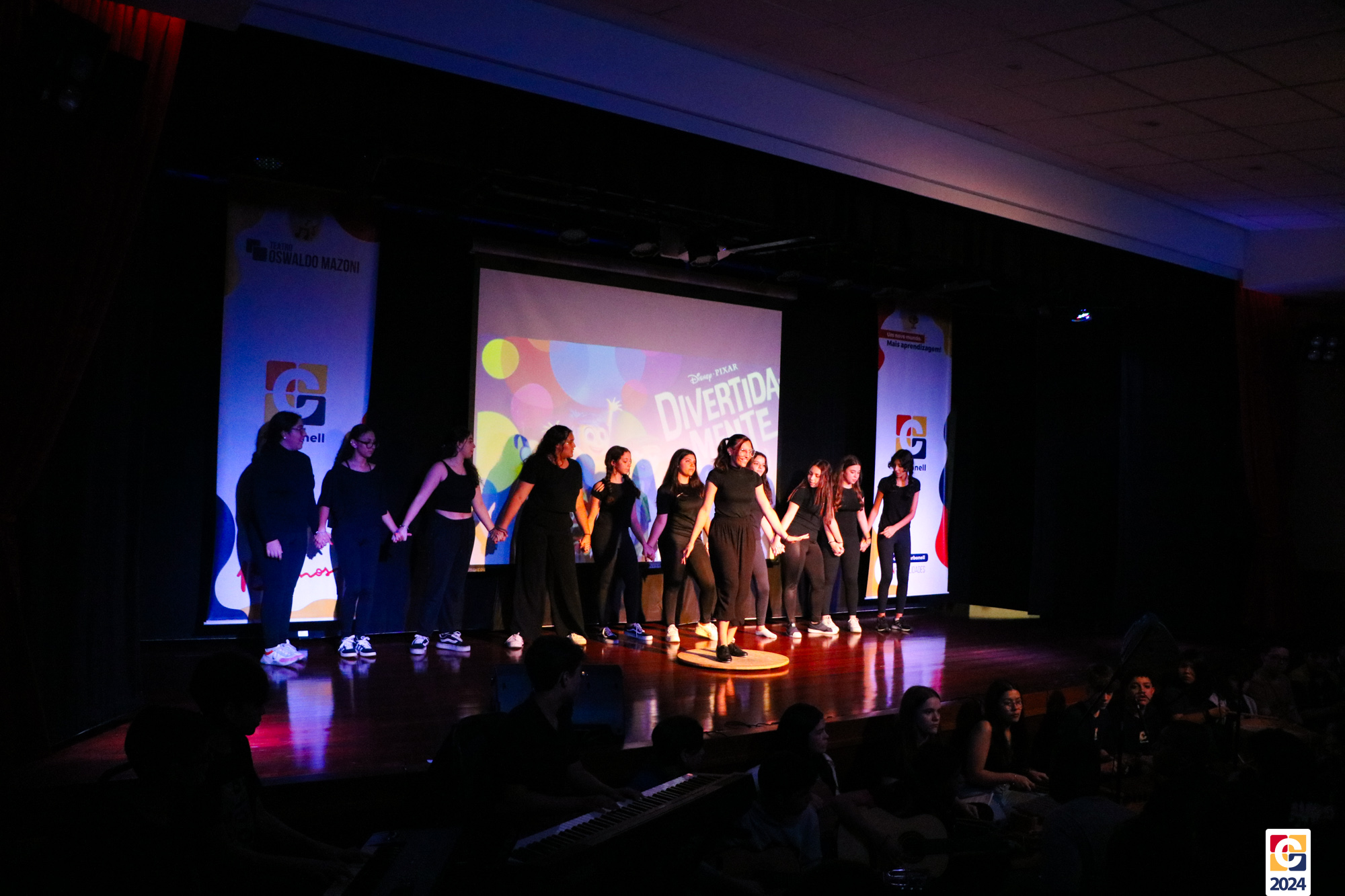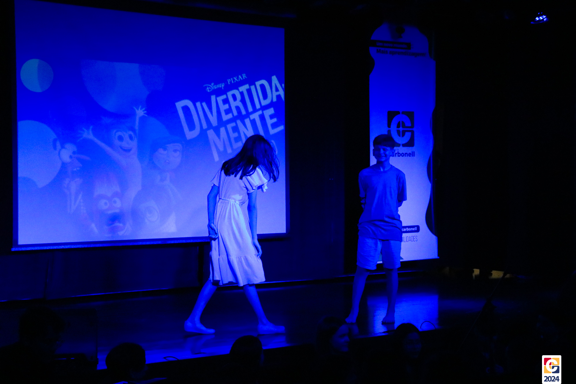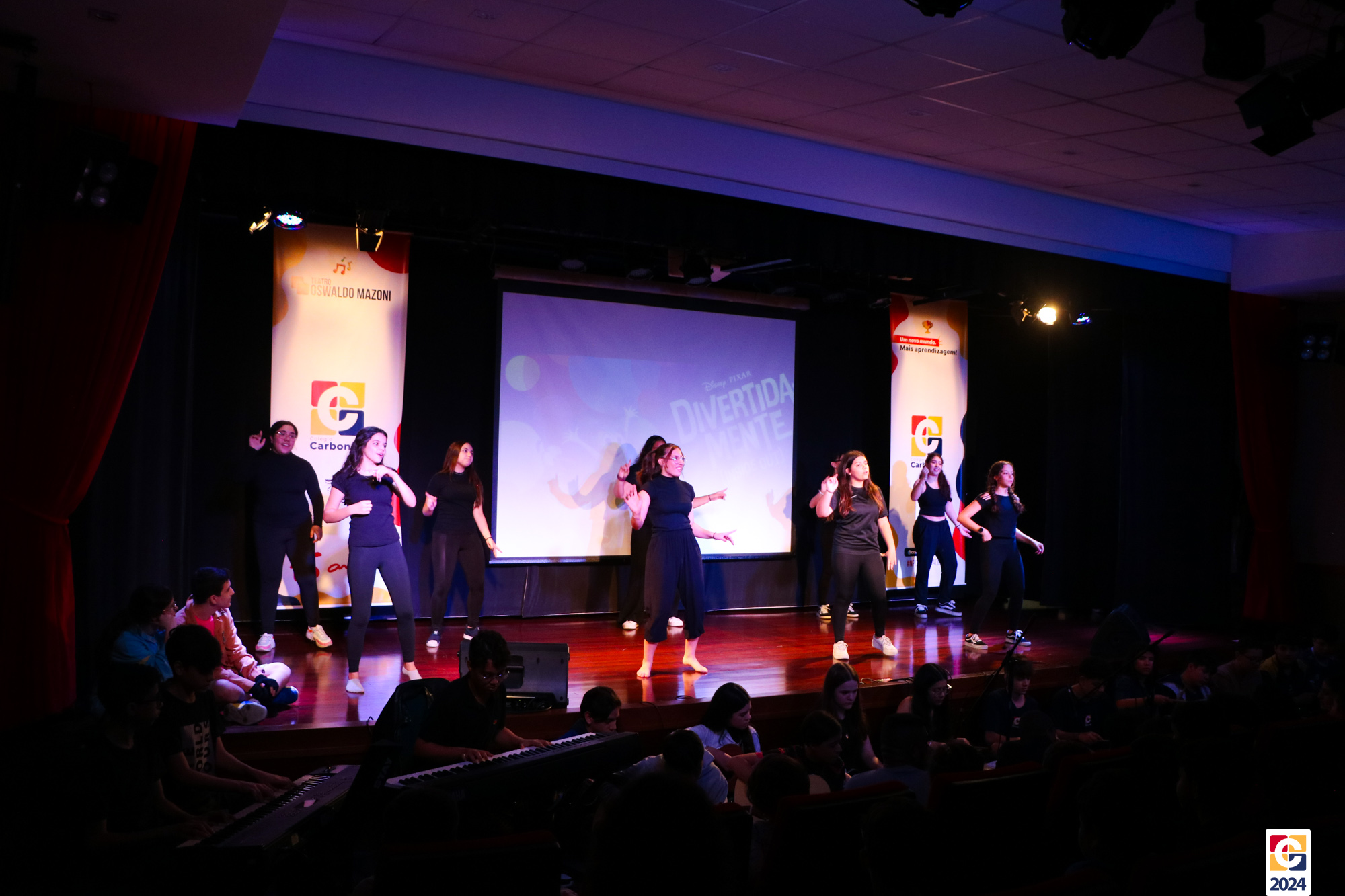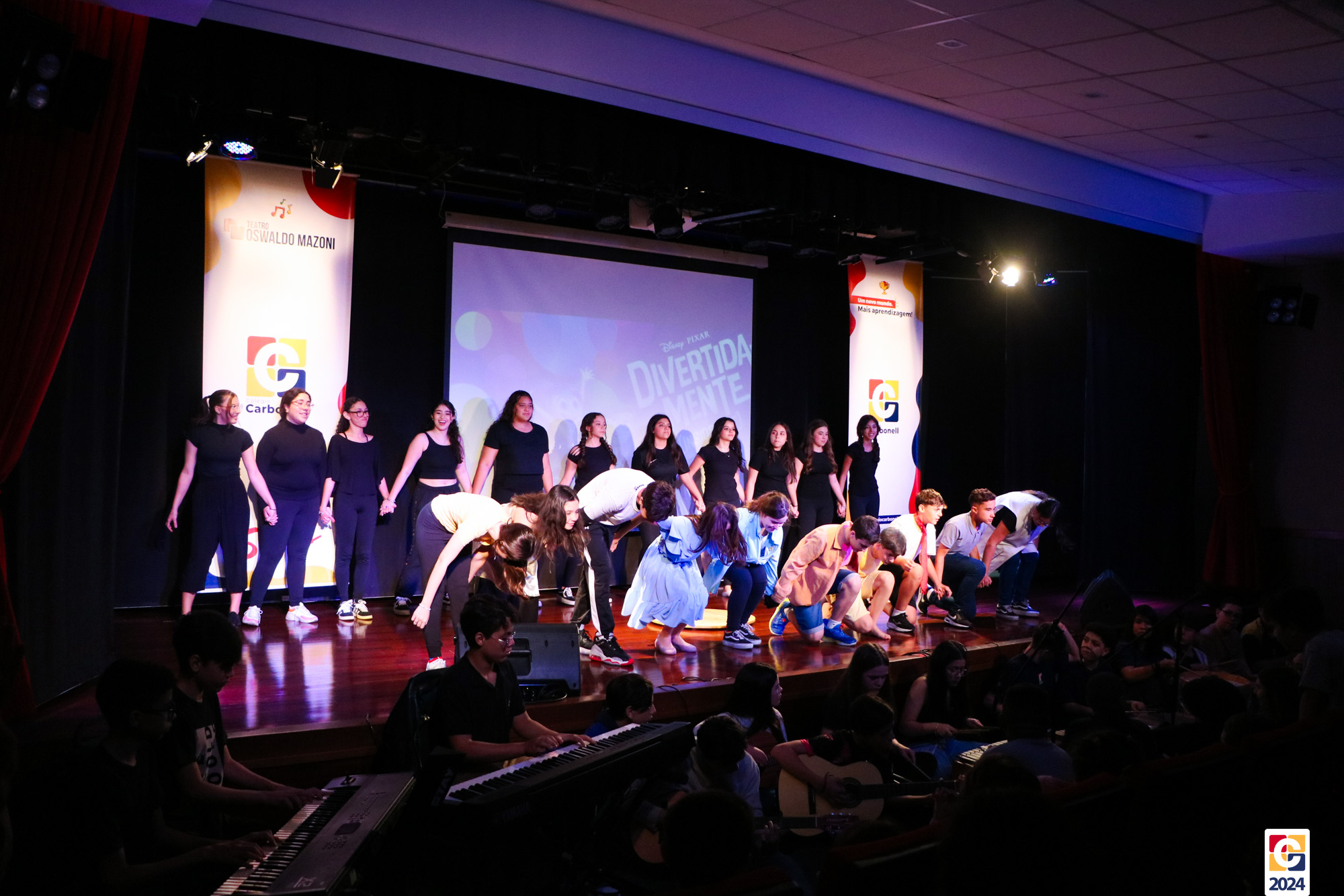 Os estudantes dos 8º anos do Colégio Carbonell protagonizaram uma apresentação especial da peça Divertida Mente no Teatro Oswaldo Mazoni, direcionada para as crianças dos Anos Iniciais. A história gira em torno de Riley, uma menina que enfrenta mudanças em sua vida, e suas emoções personificadas — Alegria, Tristeza, Medo, Raiva e Nojinho — que a ajudam a lidar com essas transições. A obra aborda temas como amizade, crescimento emocional e a importância de todas as emoções. 🌈