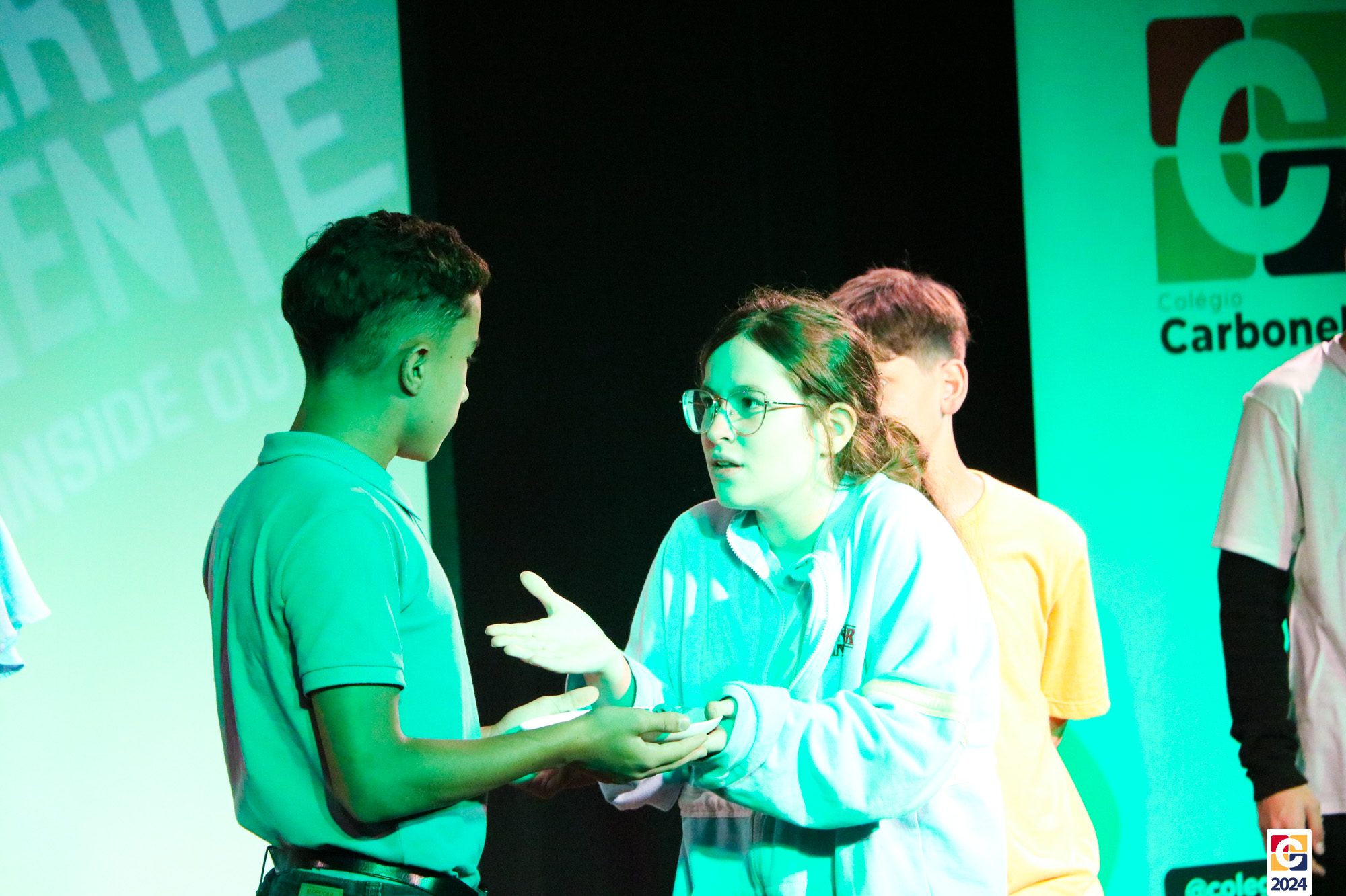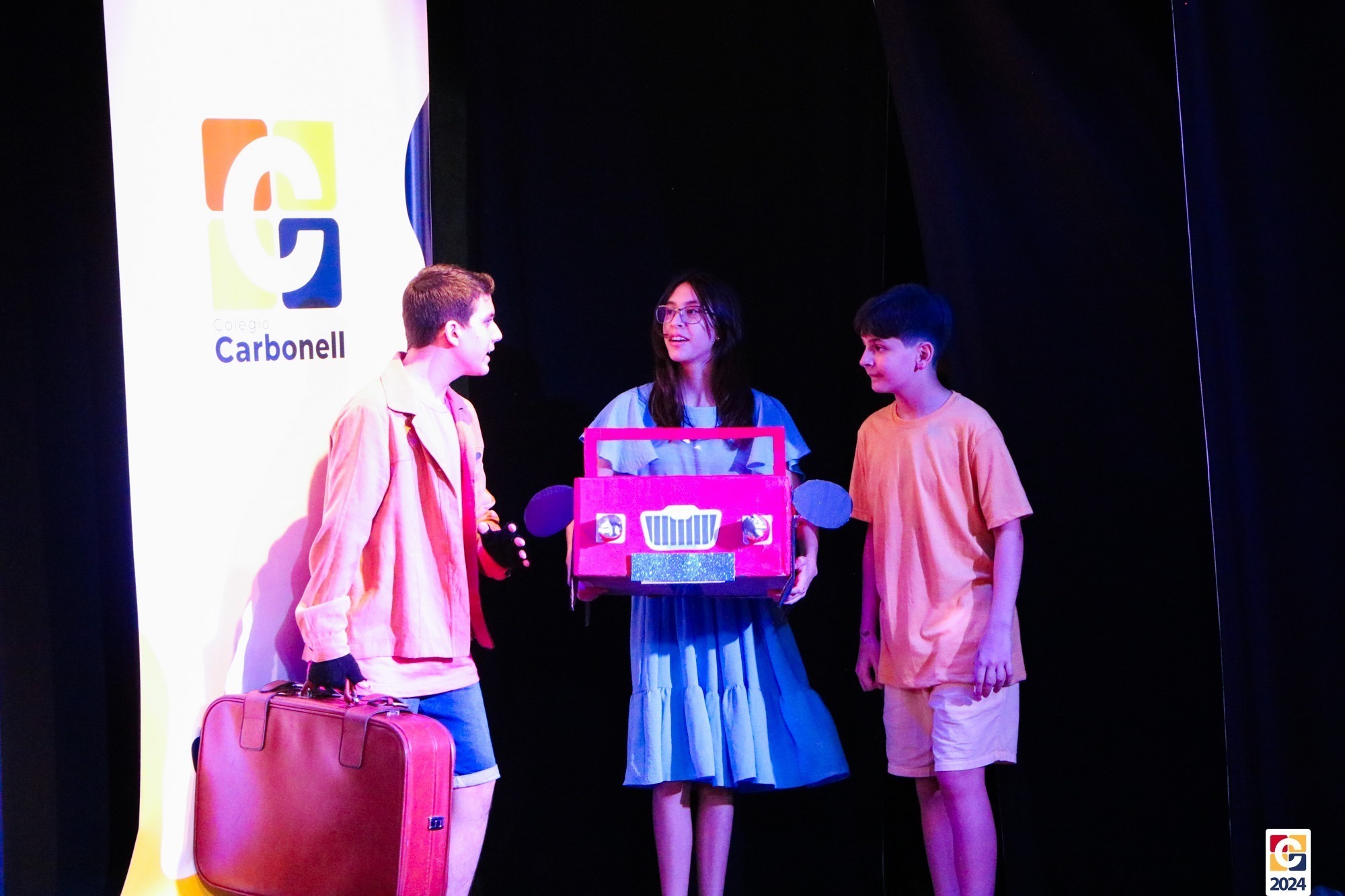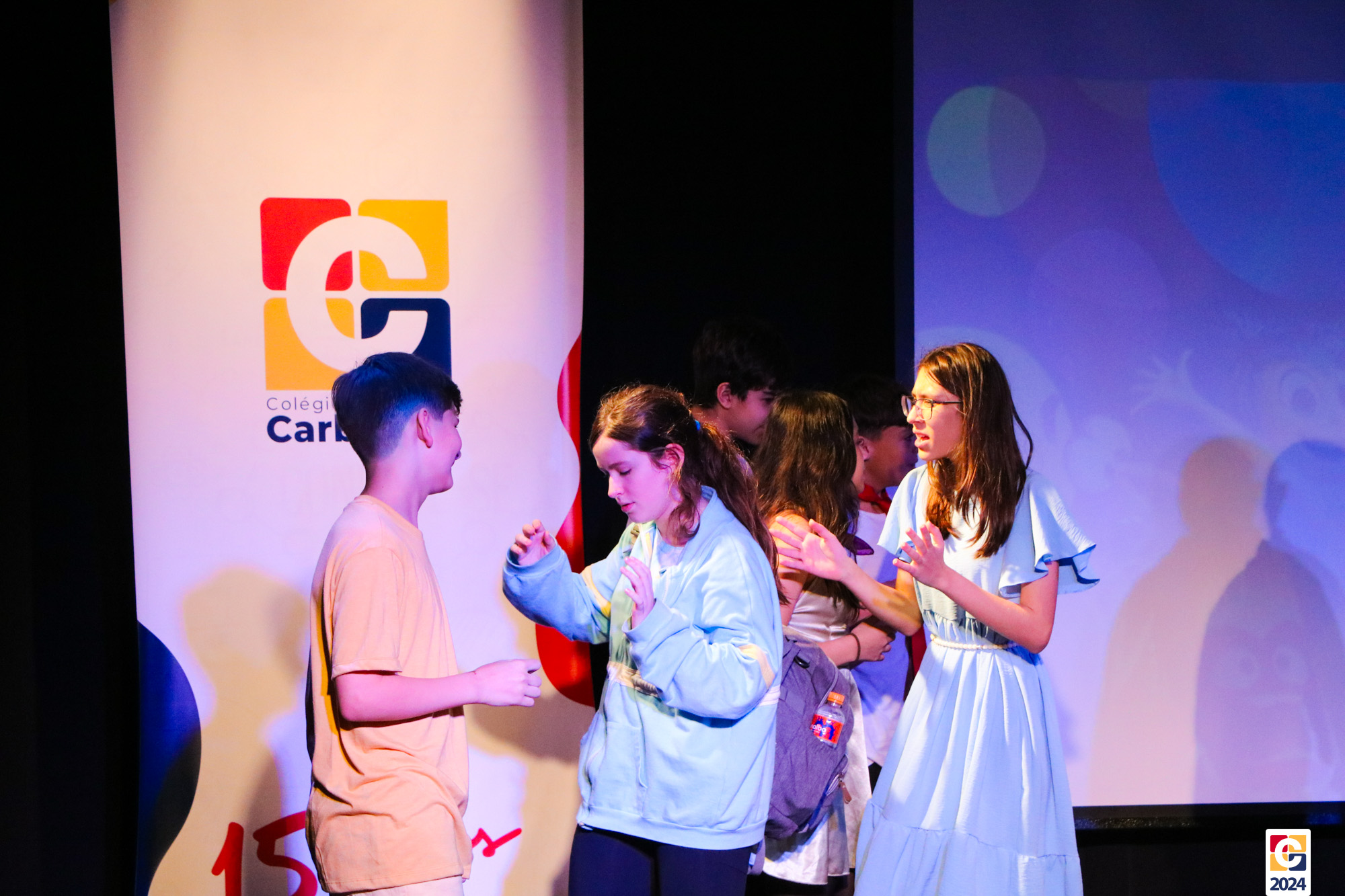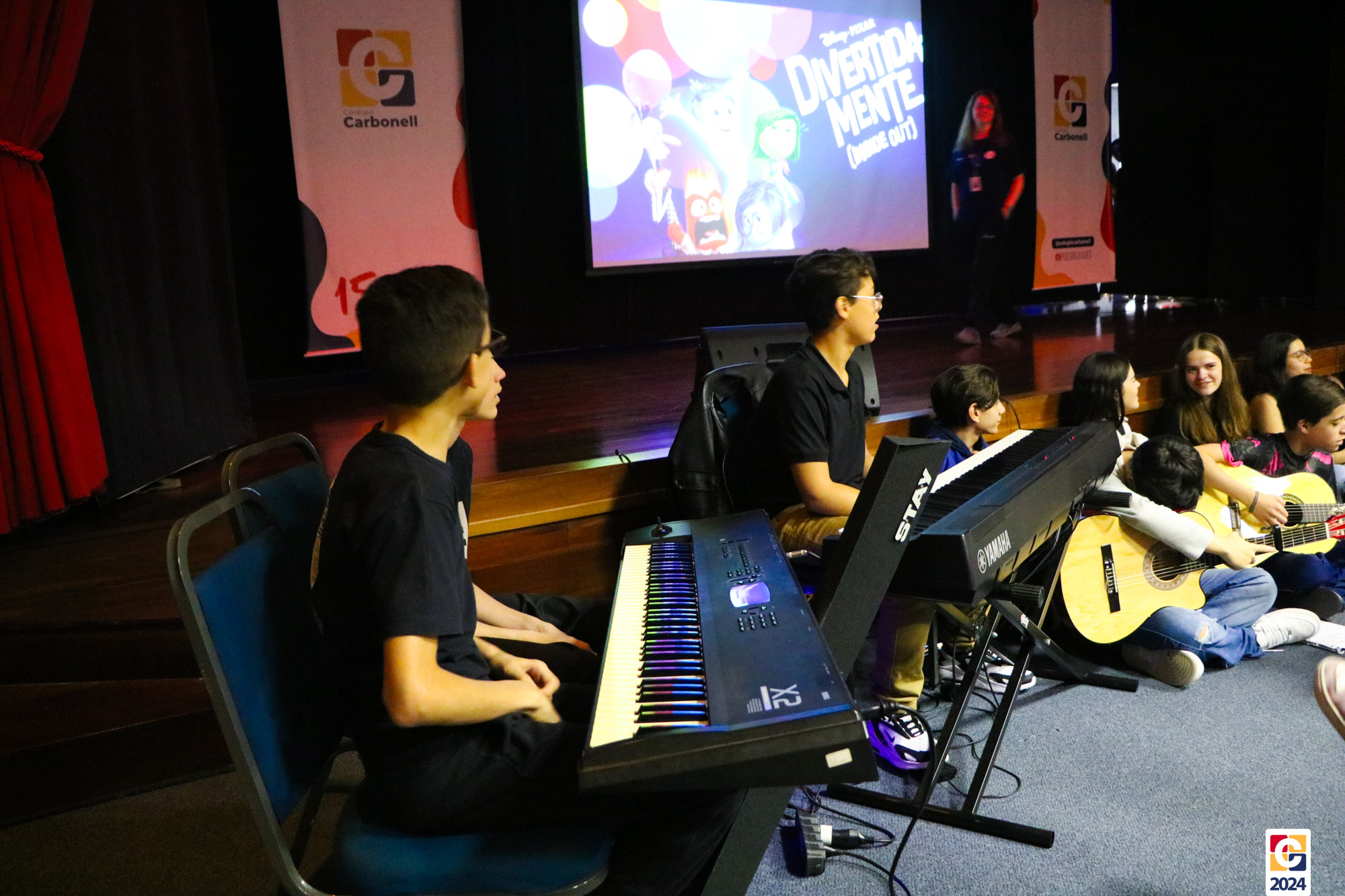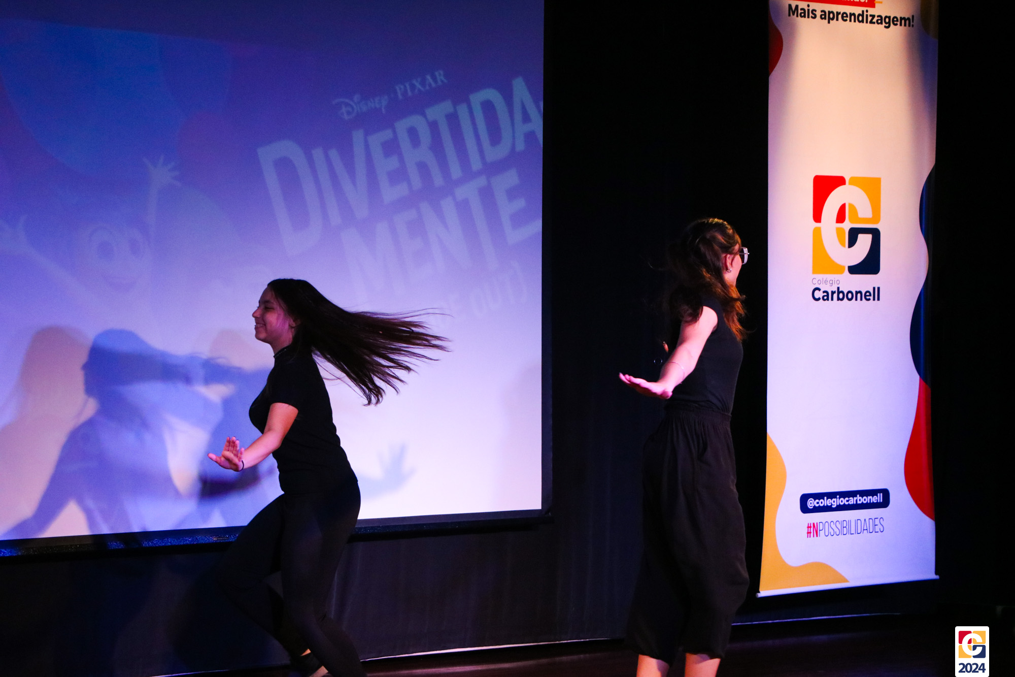 Os estudantes dos 8º anos do Colégio Carbonell protagonizaram uma apresentação especial da peça Divertida Mente no Teatro Oswaldo Mazoni, direcionada para as crianças dos Anos Iniciais. A história gira em torno de Riley, uma menina que enfrenta mudanças em sua vida, e suas emoções personificadas — Alegria, Tristeza, Medo, Raiva e Nojinho — que a ajudam a lidar com essas transições. A obra aborda temas como amizade, crescimento emocional e a importância de todas as emoções. 🌈