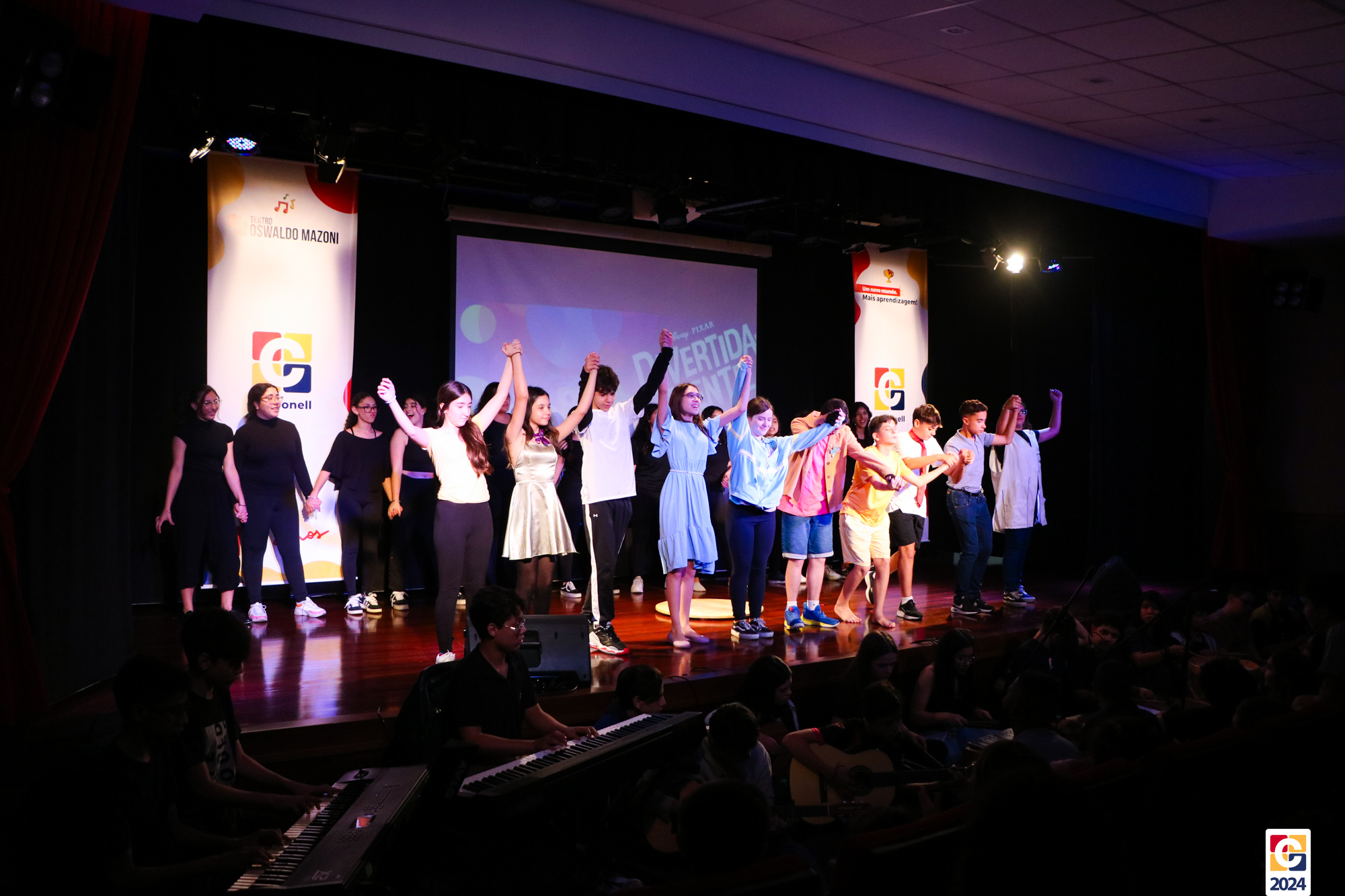 Sob a direção artística da Professora Márcia Zanin e com o Professor Rafael Monteiro responsável pela produção musical, os estudantes mostraram todo o seu talento em uma performance repleta de música, dança e muita animação. Além de cantarem e dançarem, os jovens também surpreenderam ao tocar instrumentos musicais, criando uma atmosfera contagiante e interativa. As crianças dos Anos Iniciais vibraram e se divertiram com cada parte da apresentação, que reforçou a conexão entre as diferentes turmas do colégio. 🎉