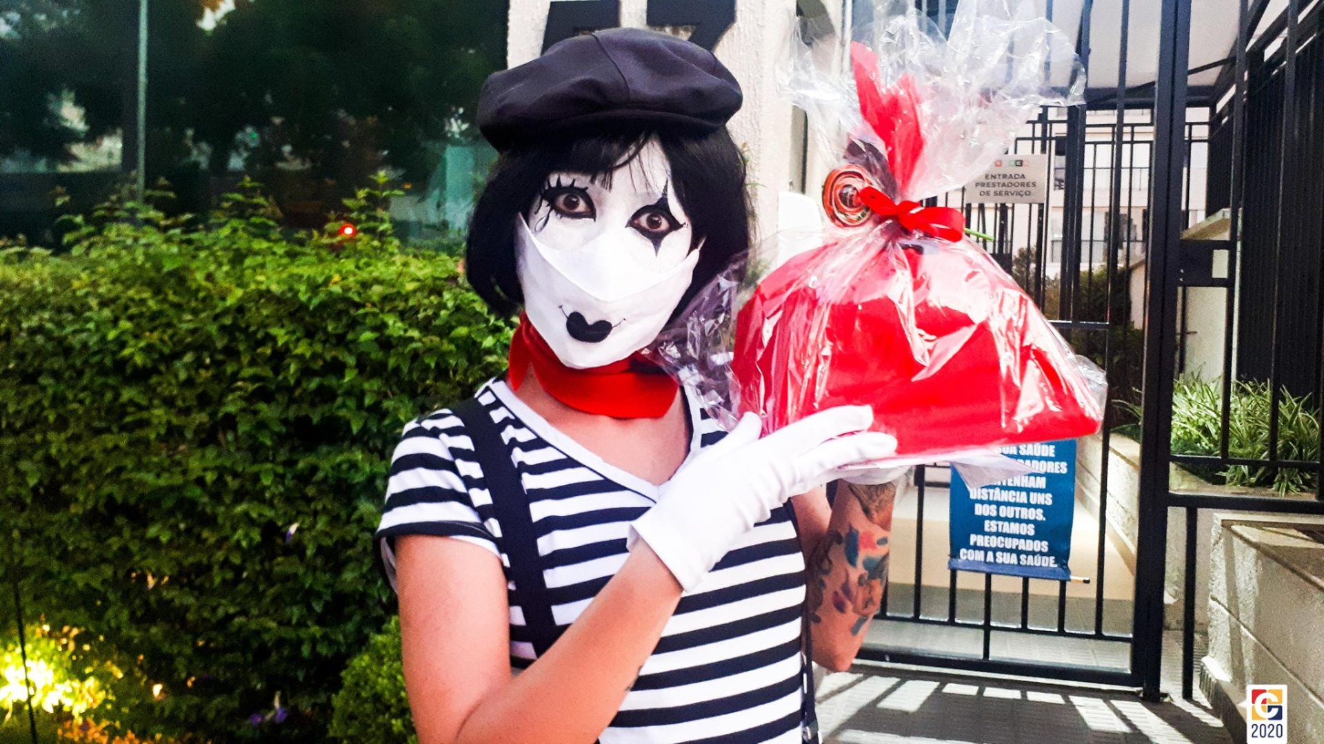 “Sabem qual foi a magia de todo o evento? A surpresa, a cumplicidade, o respeito e o amor. O encanto nos olhos dos alunos e a emoção desse encontro foi uma das coisas mais maravilhosas que já vivi. Ao final da minha performance, por meio da personagem Mímica, de presente, eles ganharam uma flor e meu coração pulsando, juntamente com um kit e um bilhetinho. Antes de partir, eu rompia o silêncio com a frase: “Eu te amo muito! Guarde esse segredo, precisamos chegar até o último aluno com o mesmo encanto.