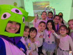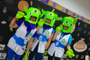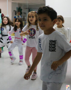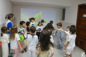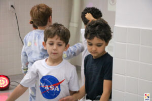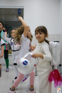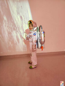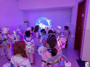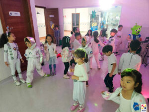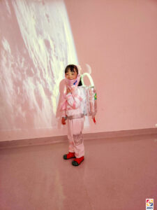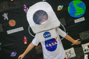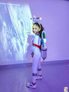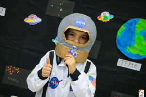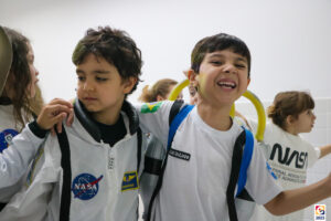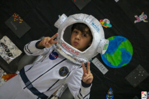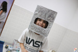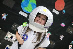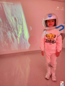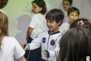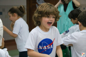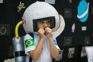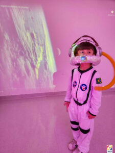 Vestidos a caráter com roupas de astronauta, incluindo acessórios confeccionados pelos próprios pais, os pequenos exploradores deram vida ao universo com itens da AEB – Agência Espacial Brasileira e da NASA. Durante a atividade, visitaram o Ateliê Lagarta e participaram de uma animada “Festa no Espaço”, com muita dança e alegria, tornando o aprendizado ainda mais divertido! 👩🏽‍🚀
