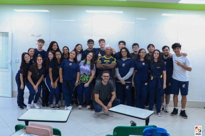 Formado na Turma 2025 do Carbonell, Enzo de Carvalho retornou ao colégio ontem (19) para reencontrar professores, colaboradores e, principalmente, os estudantes do Ensino Médio. A convite do Professor Rene Araújo, o bate-papo foi dedicado especialmente ao Terceirão 2026, que se prepara este ano para os desafios do vestibular e pôde se inspirar de perto com a conquista recente do colega. 👏
