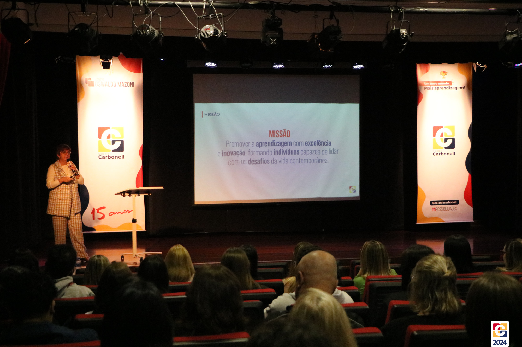 O Colégio Carbonell está animado com o retorno das aulas após as férias do meio do ano! Na quarta-feira (31), nossa Mantenedora Andrea Lourenço conduziu uma reunião com os professores, com o objetivo de alinhar a equipe, revisar planejamentos e inspirar todos para o segundo semestre letivo. 💭