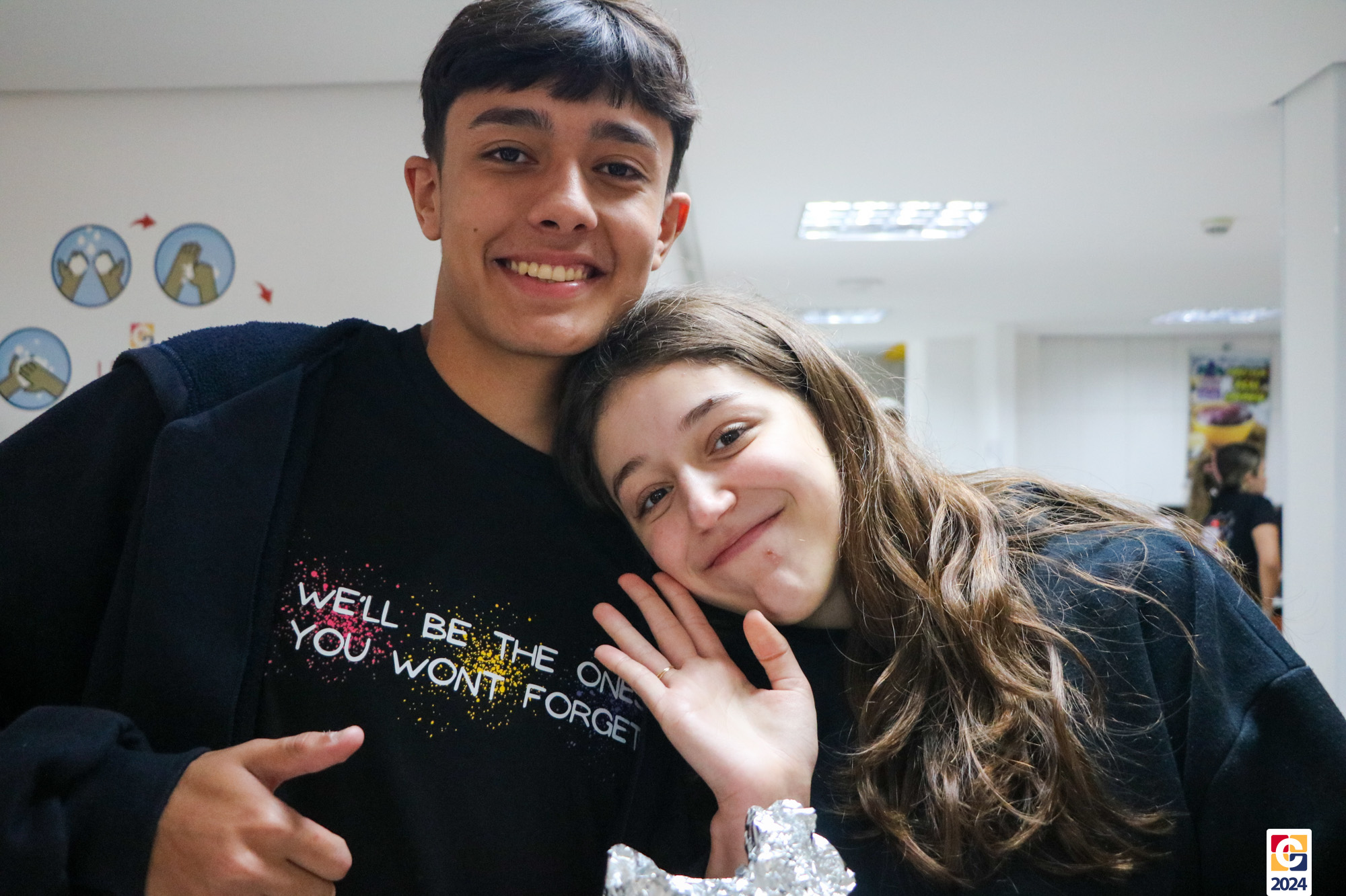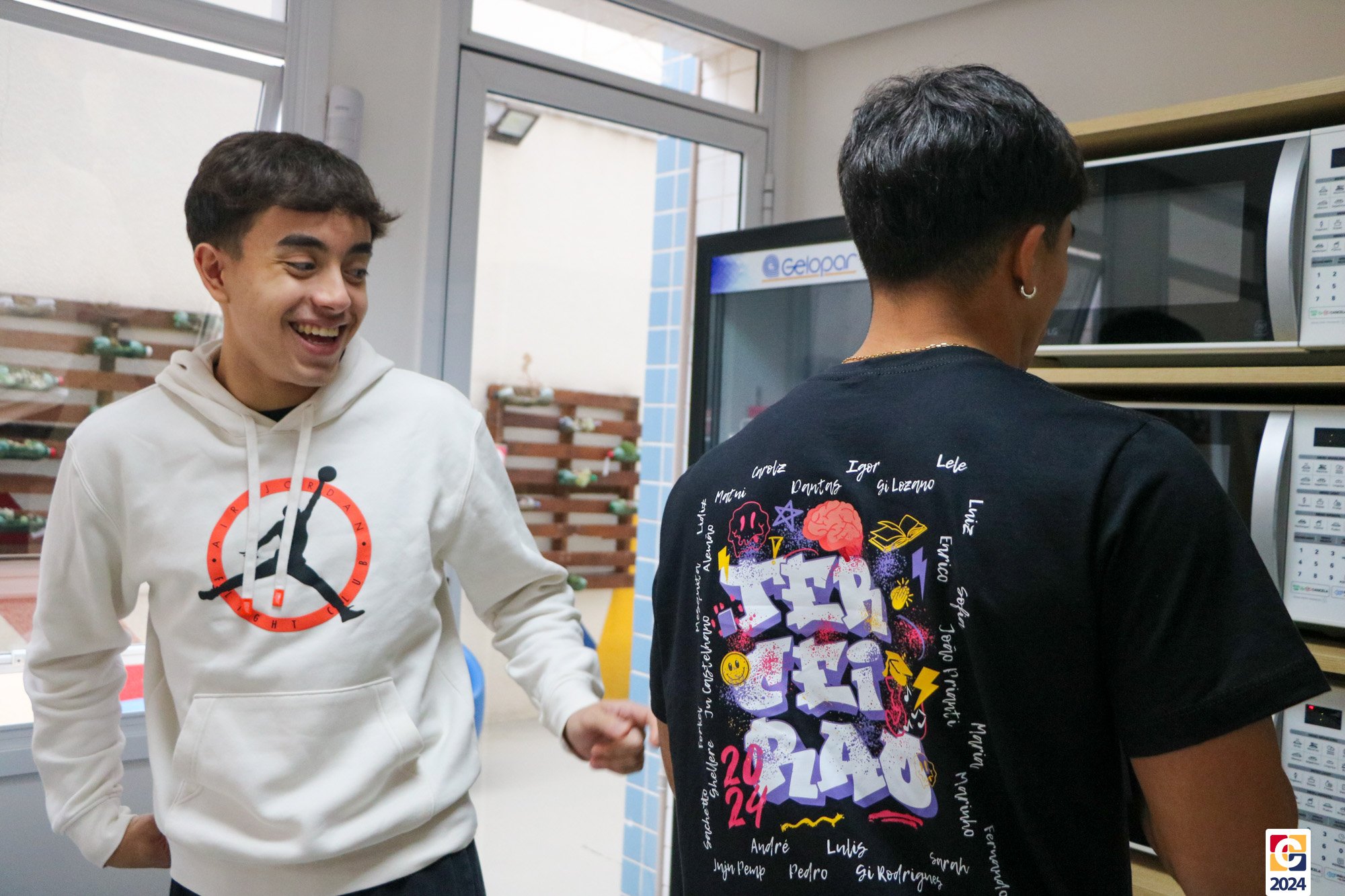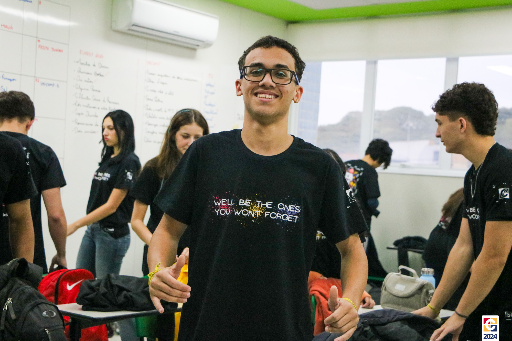 Nos primeiros momentos da volta às aulas, nossos estudantes da 3ª série do Ensino Médio foram surpreendidos com uma sala de aula diferente e a tradicional camiseta do Terceirão. O evento marca o início do último semestre da Turma 2024, em preparação rumo à conquista de seus sonhos. Além das camisetas, a equipe de coordenadores do Ensino Médio preparou uma surpresa especial: fotos dos estudantes do 3º ano mais novos, batizado como “Terceirinho“, foram exibidas na sala de aula, trazendo um toque especial ao ambiente. 👕