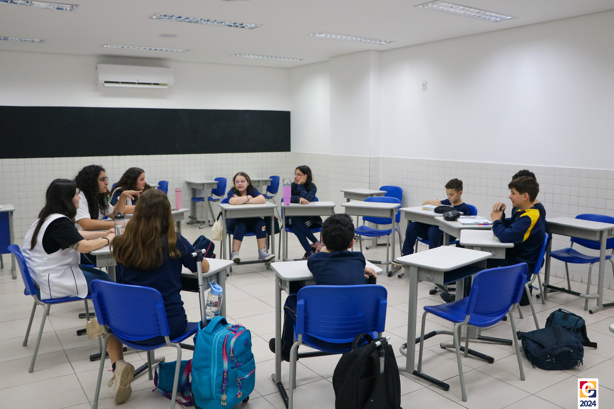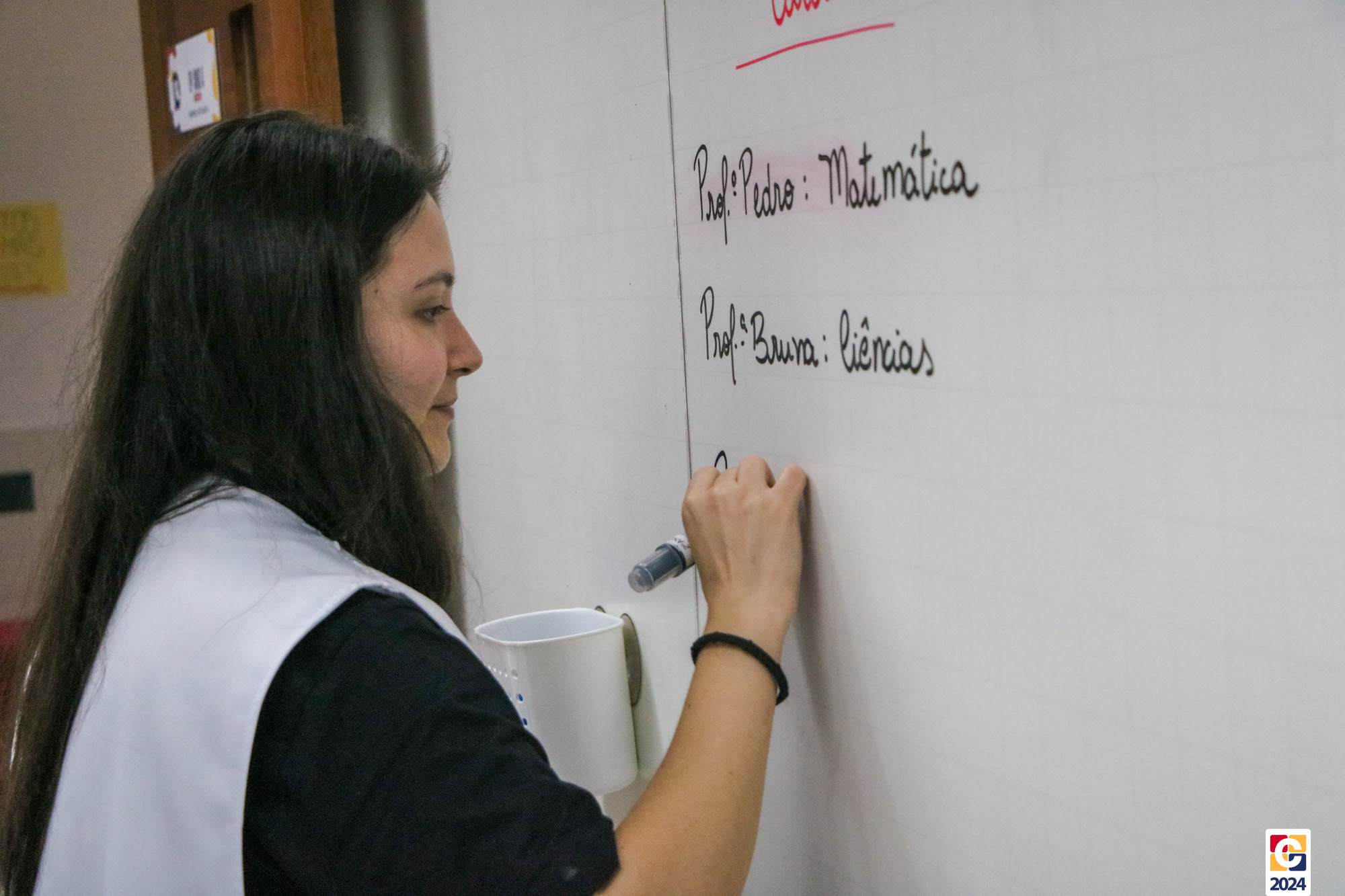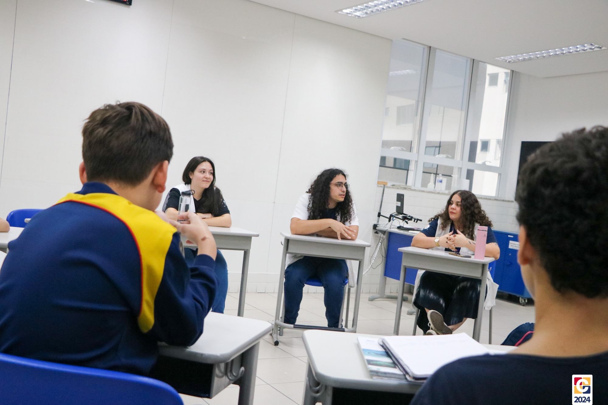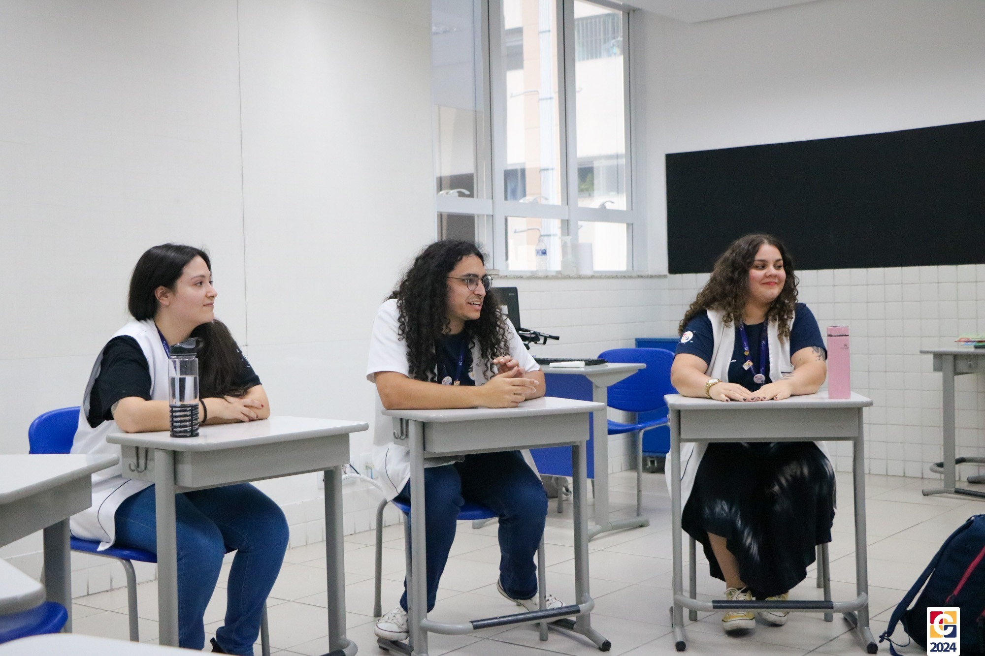 Nos primeiros momentos da volta às aulas, nossos estudantes da 3ª série do Ensino Médio foram surpreendidos com uma sala de aula diferente e a tradicional camiseta do Terceirão. O evento marca o início do último semestre da Turma 2024, em preparação rumo à conquista de seus sonhos. Além das camisetas, a equipe de coordenadores do Ensino Médio preparou uma surpresa especial: fotos dos estudantes do 3º ano mais novos, batizado como “Terceirinho“, foram exibidas na sala de aula, trazendo um toque especial ao ambiente. 👕