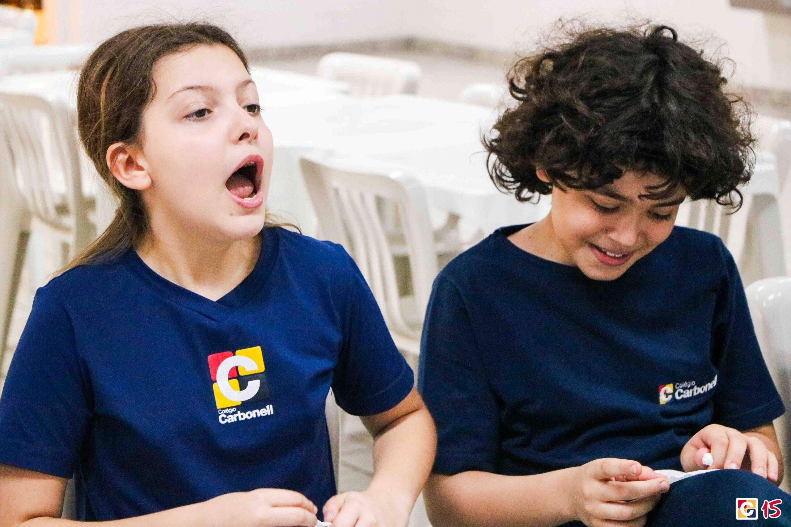 Tarde de sexta-feira. Área de convivência do Colégio Carbonell. Ao centro, quatro cadeiras dispostas em linha e jurados exigentes. Sairiam dali ilesos, numa das mais cobiçadas competições de talentos do mundo da Vila Augusta, em Guarulhos, somente os verdadeiros campeões de música e dança, somente os talentos mais potentes e dignos de apresentações em escala mundial. A brincadeira e o mundo da imaginação, ali, experimentavam algumas de suas versões mais poderosas. 🚀